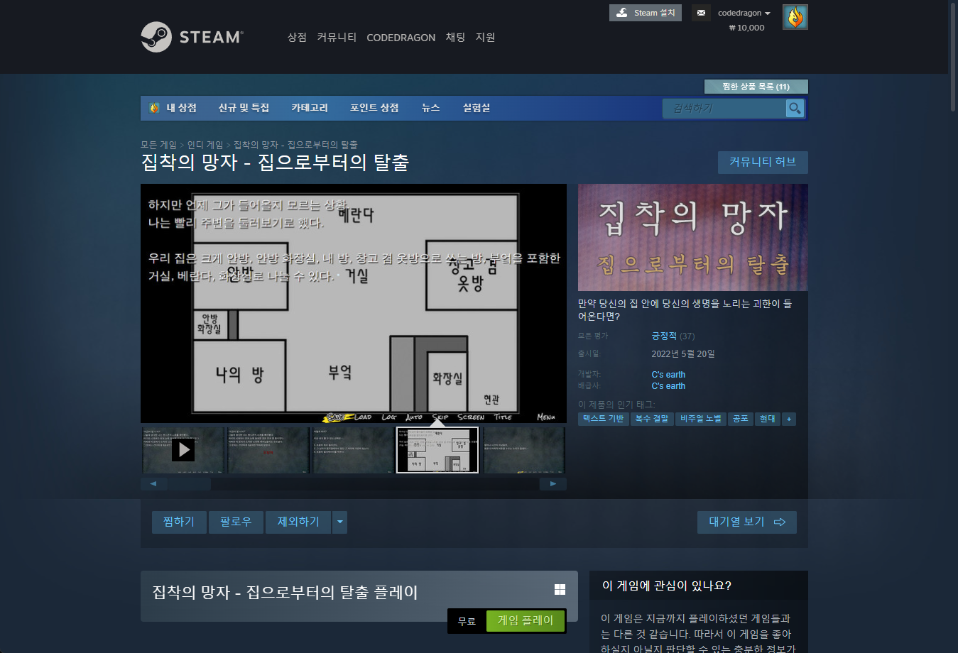 "집착의 망자 - 집으로부터의 탈출" 스팀 페이지 입니다.