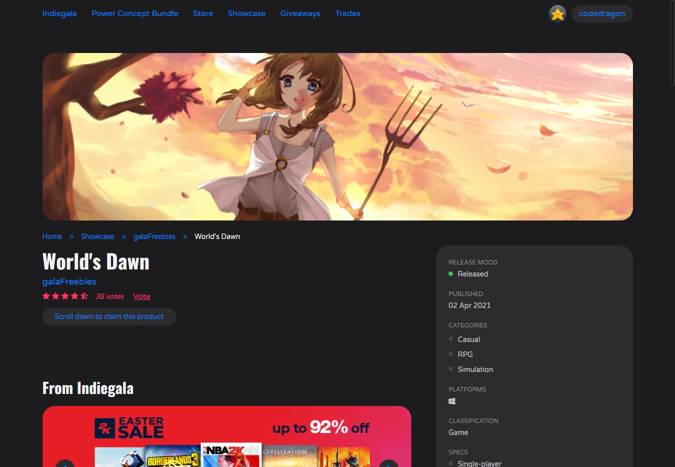 ₩19,500 -> ₩ 0(Free) World's Dawn 월드 돈 무료 - 인디갈라 indiegala 무료 소장 기회 기간한정 indiegala FREE GAME, Limited time