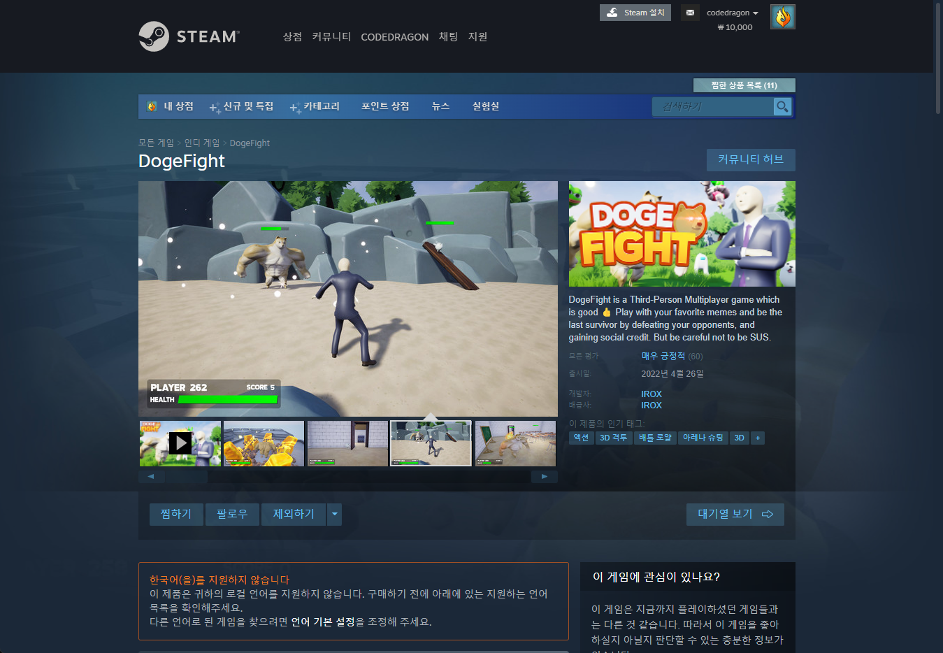 "DogeFight" 스팀 페이지 입니다.