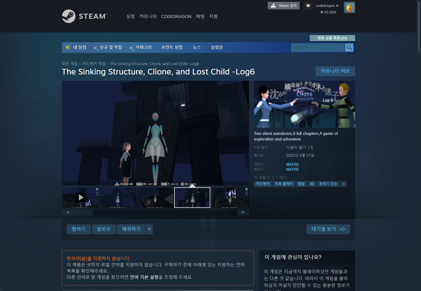 "The Sinking Structure, Clione, and Lost Child -Log6" 스팀 페이지 입니다.