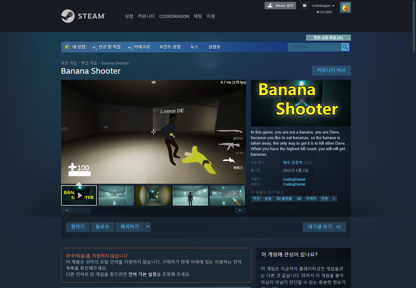 "Banana Shooter" 스팀 페이지 입니다.