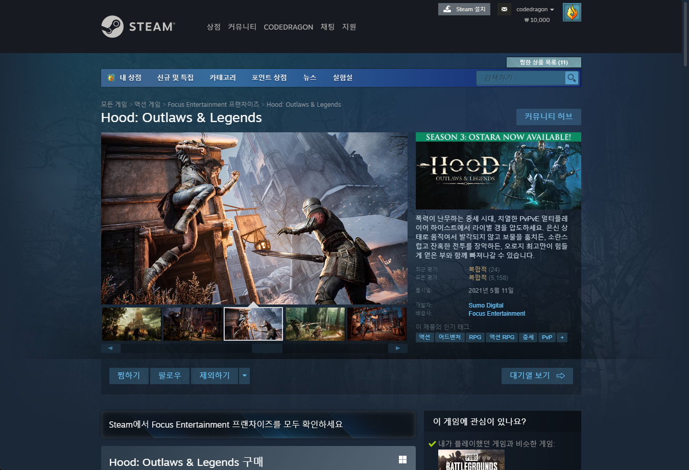 - "Hood: Outlaws & Legends" - Steam 스팀 게임 페이지