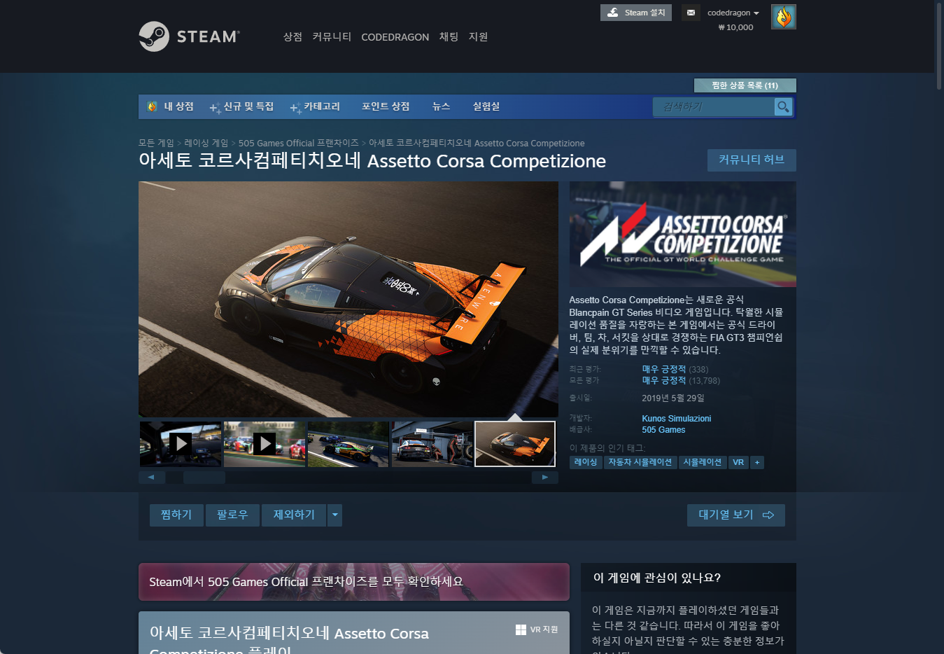 "Assetto Corsa Competizione" 게임페이지에 접속합니다.