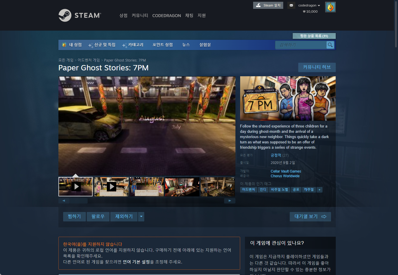 "Paper Ghost Stories: 7PM" 게임페이지에 접속합니다.