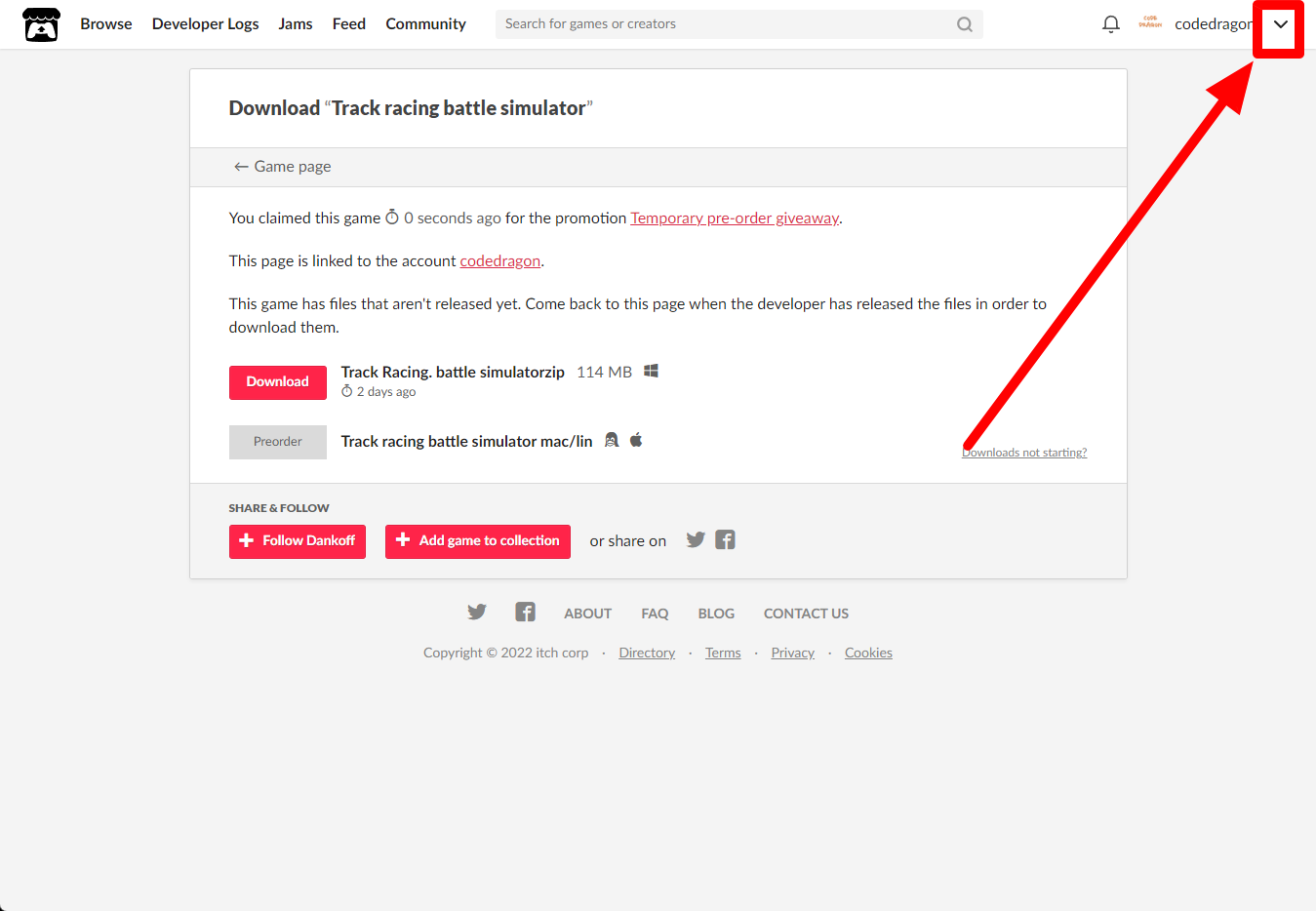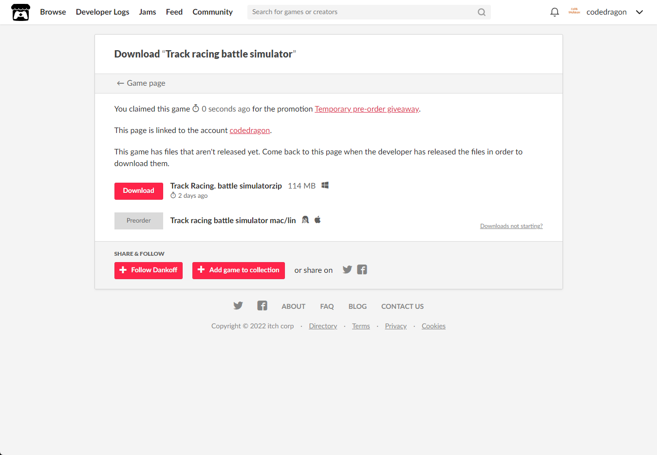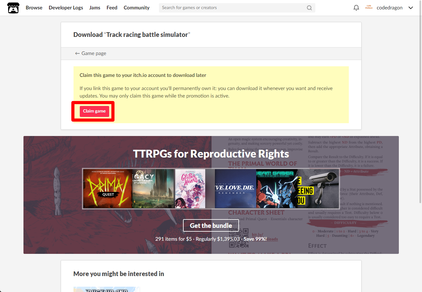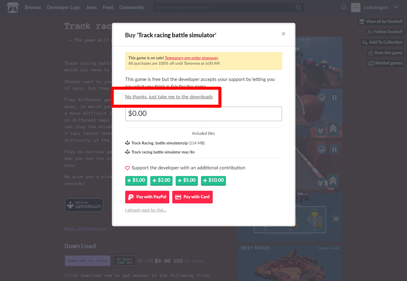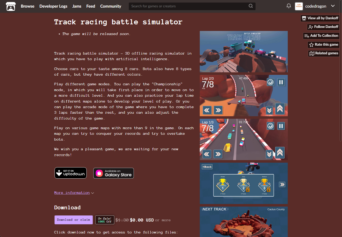 "Track racing battle simulator" 페이지에 있는 [Download or claim]을 클릭합니다.