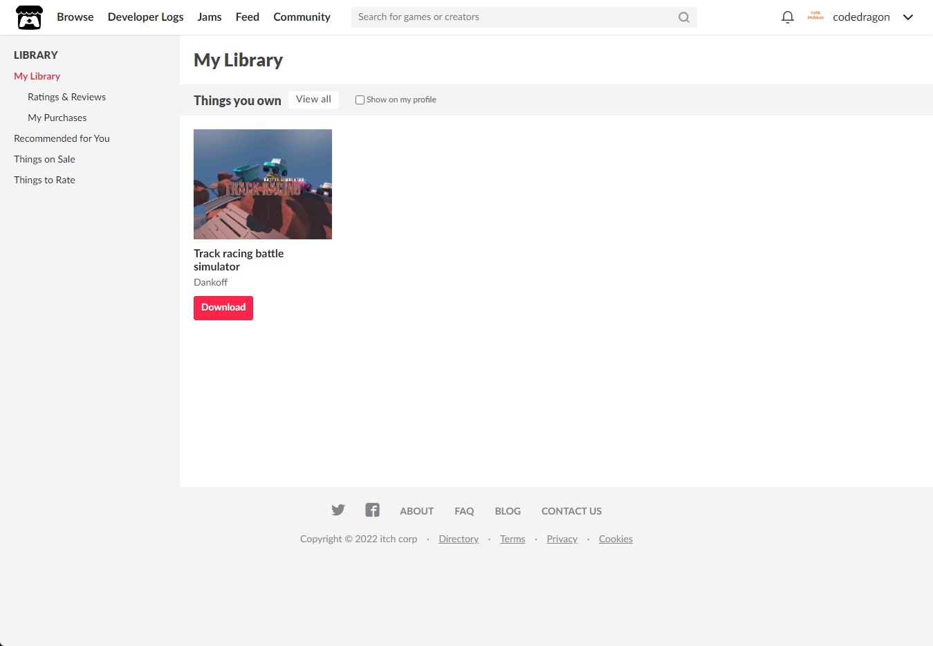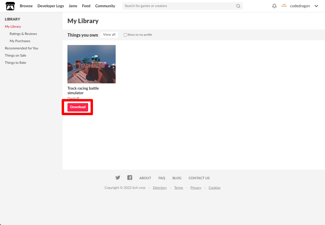 "My Lirary"에서 방금 받은 "Track racing battle simulator" 게임 항목을 확인할 수 있습니다.