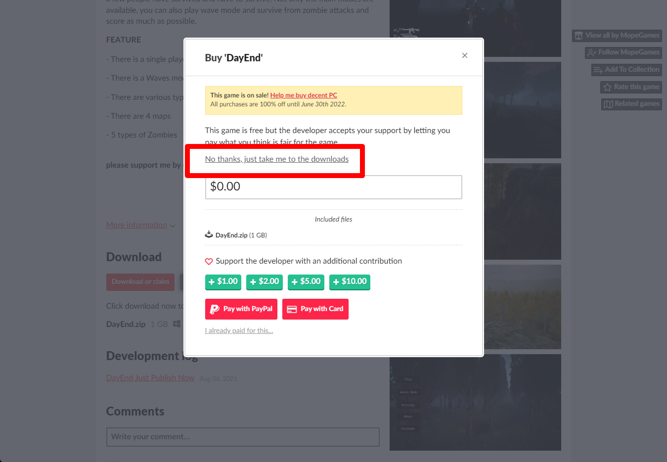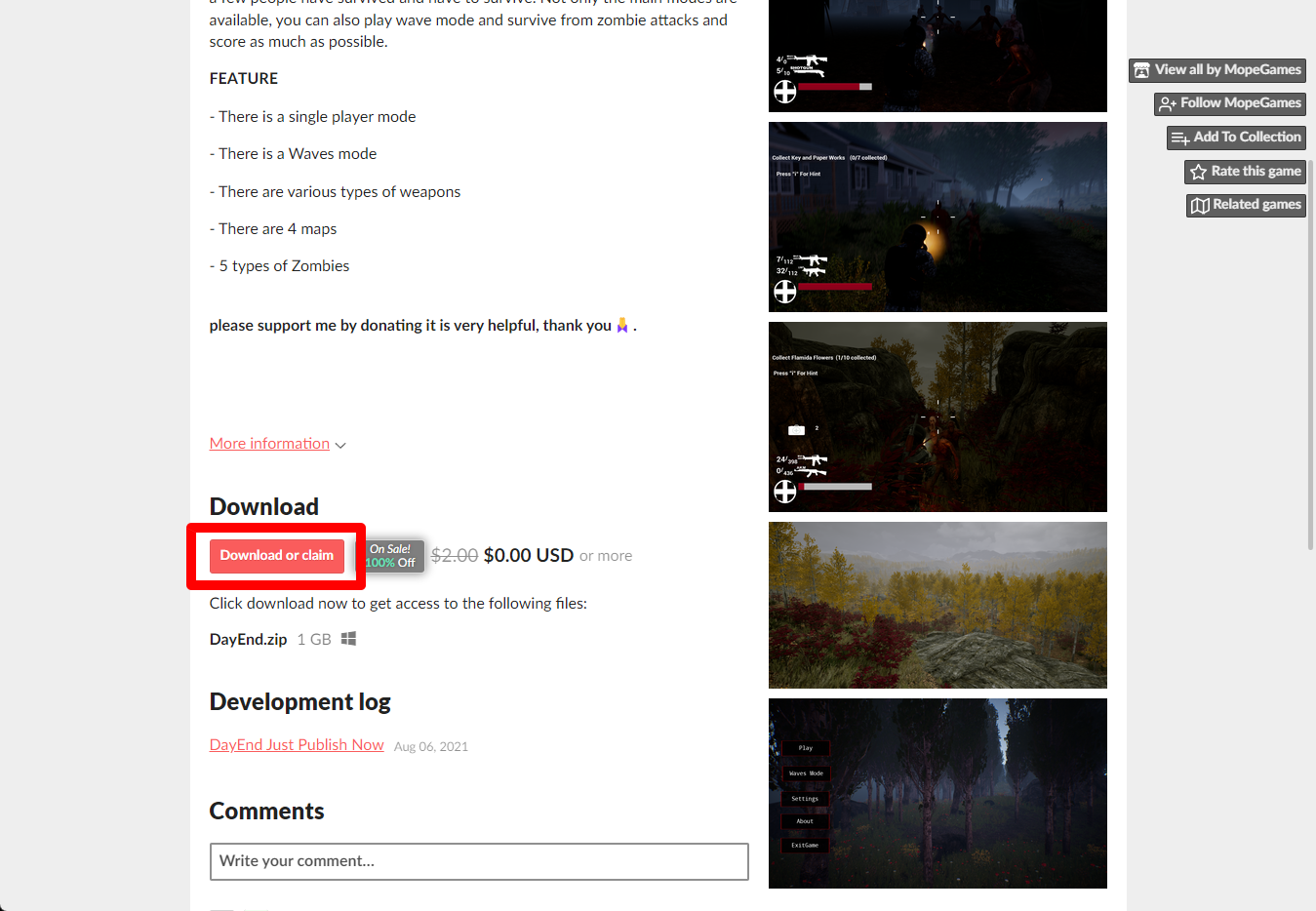 "DayEnd" 페이지를 조금 내려서 [Download or claim]을 클릭합니다.
