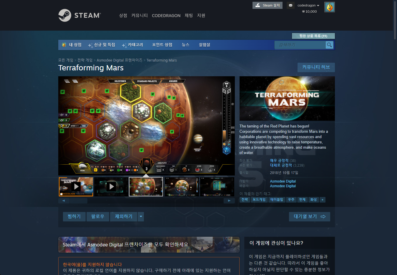 - "Terraforming Mars" - Steam 스팀 게임 페이지