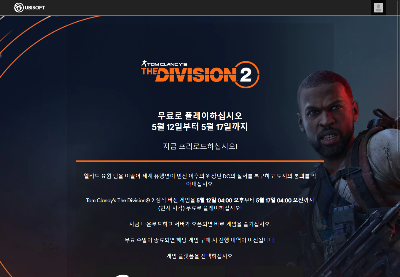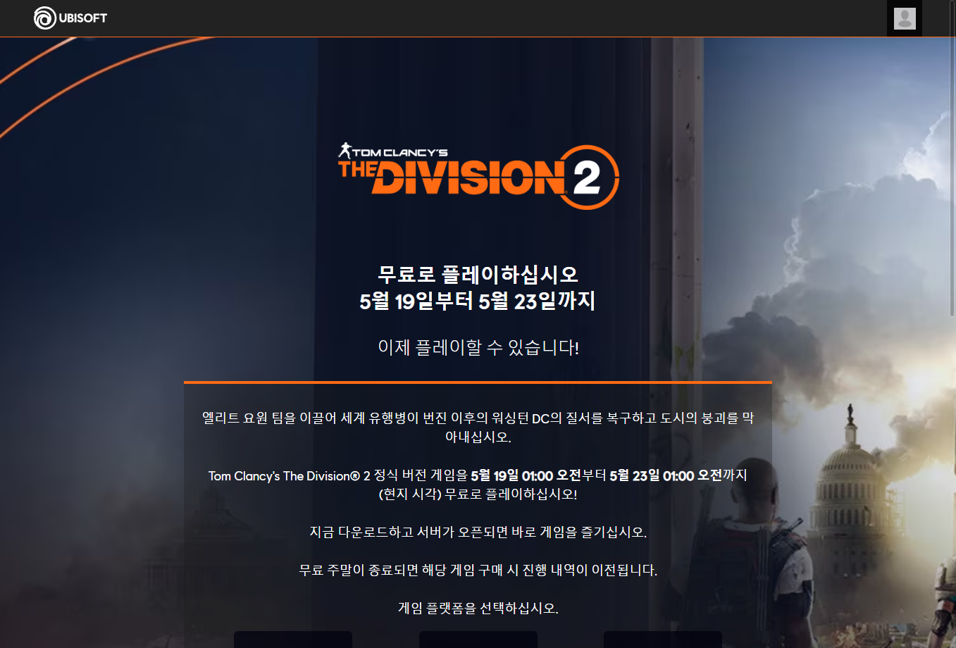 Tom Clancy's The Division 2 톰 클랜시의 더 디비전 2 Play for Free weekend on Ubisoft 유비소프트 금주 무료 플레이