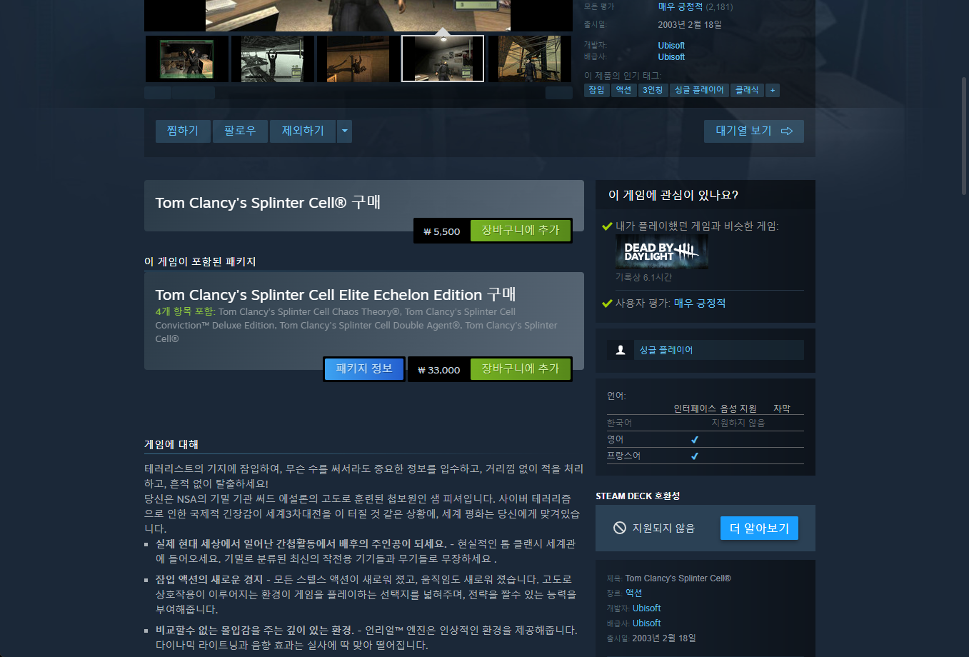 "Tom Clancy's Splinter Cell®" - Steam 스팀 페이지
