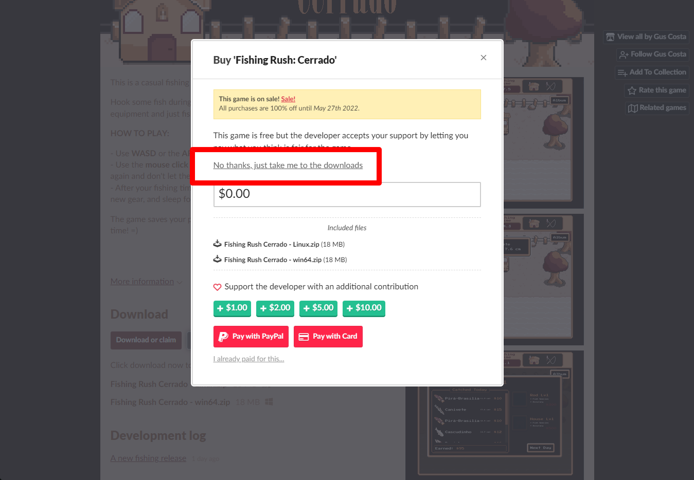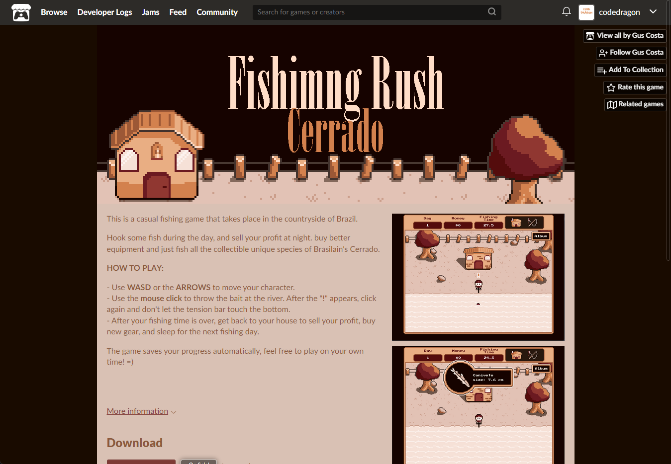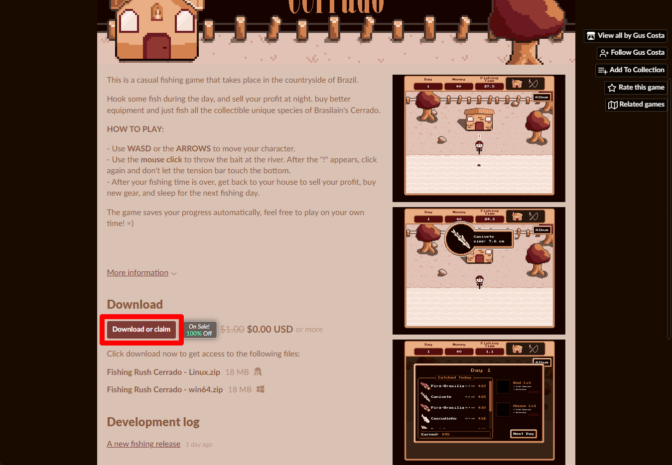 ₩1,278 -> ₩0(Free) Fishing Rush: Cerrado 피싱 러시: 세라도 무료로 받기 영구소장 - itch.io 잇치 닷 아이오 한시적 무료 소장하기