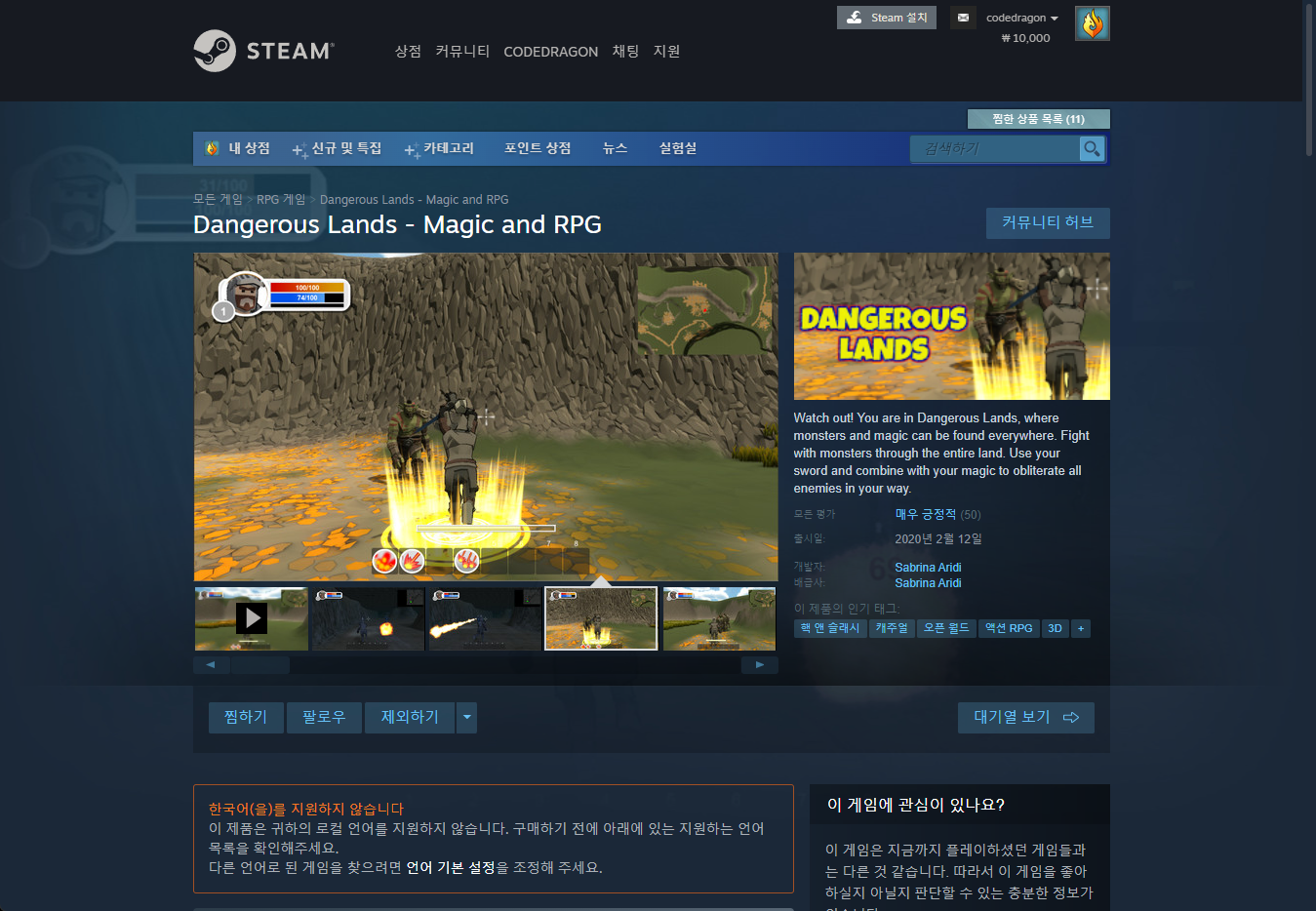 - "Dangerous Lands - Magic and RPG" - Steam 스팀 페이지