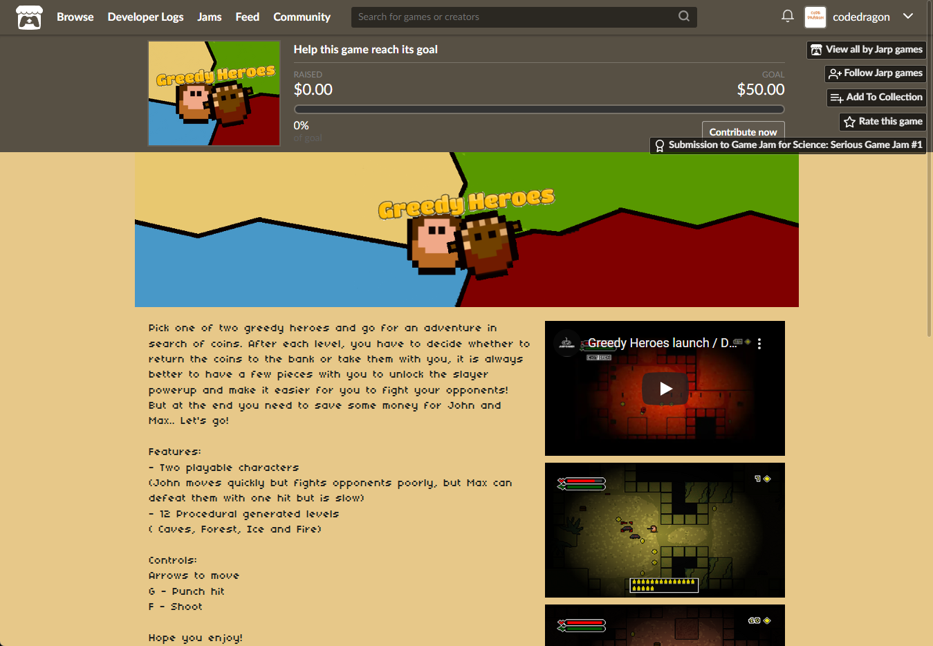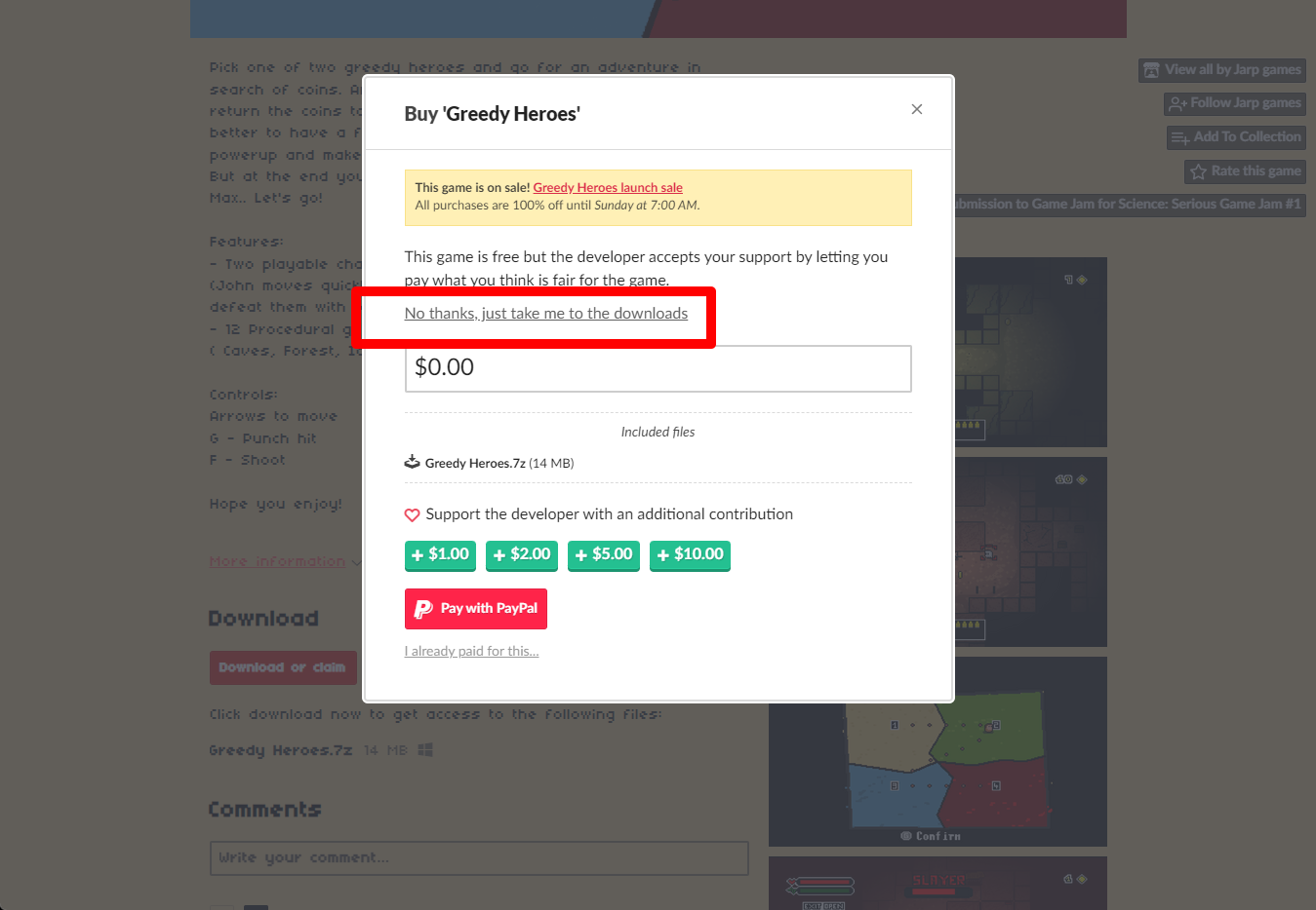 ₩1,888 -> ₩0(Free) Greedy Heroes 그리디 히어로즈 무료로 받기 영구소장 - itch.io 잇치 닷 아이오 한시적 무료 소장하기