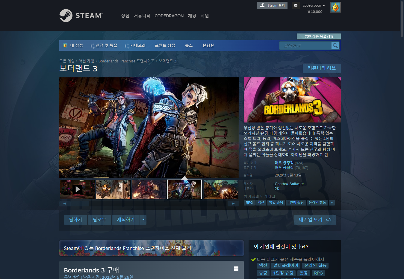 "Borderlands 3" - Steam 스팀 게임 페이지