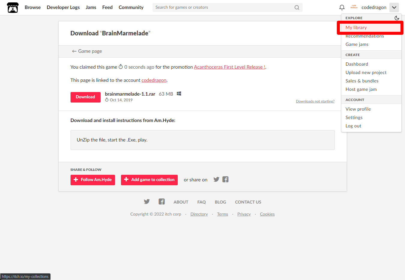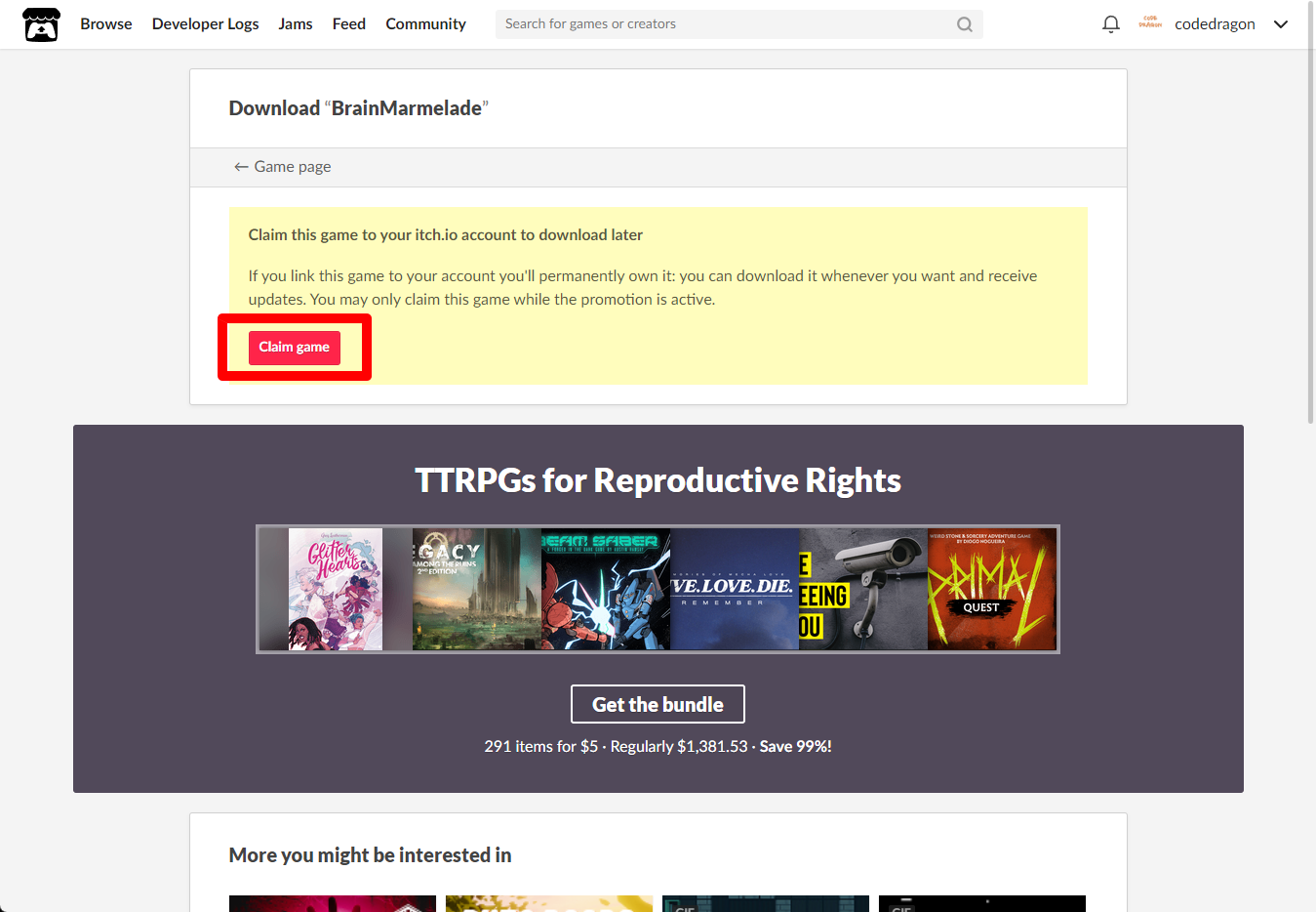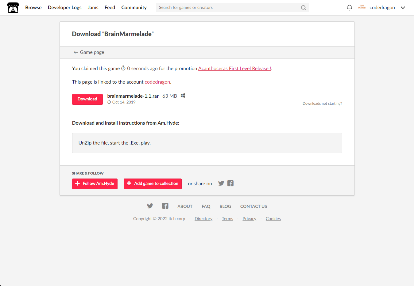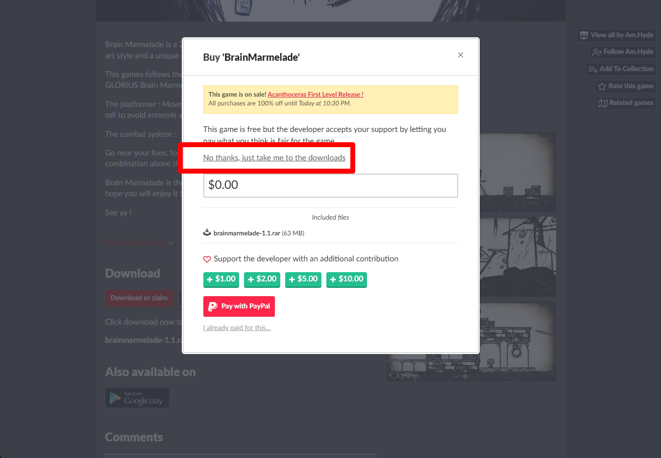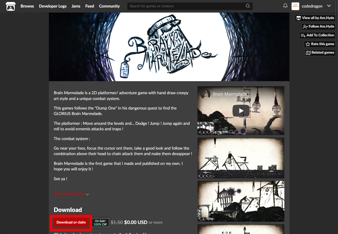 "Brain Marmelade" 페이지에 있는 [Download or claim]을 클릭합니다.