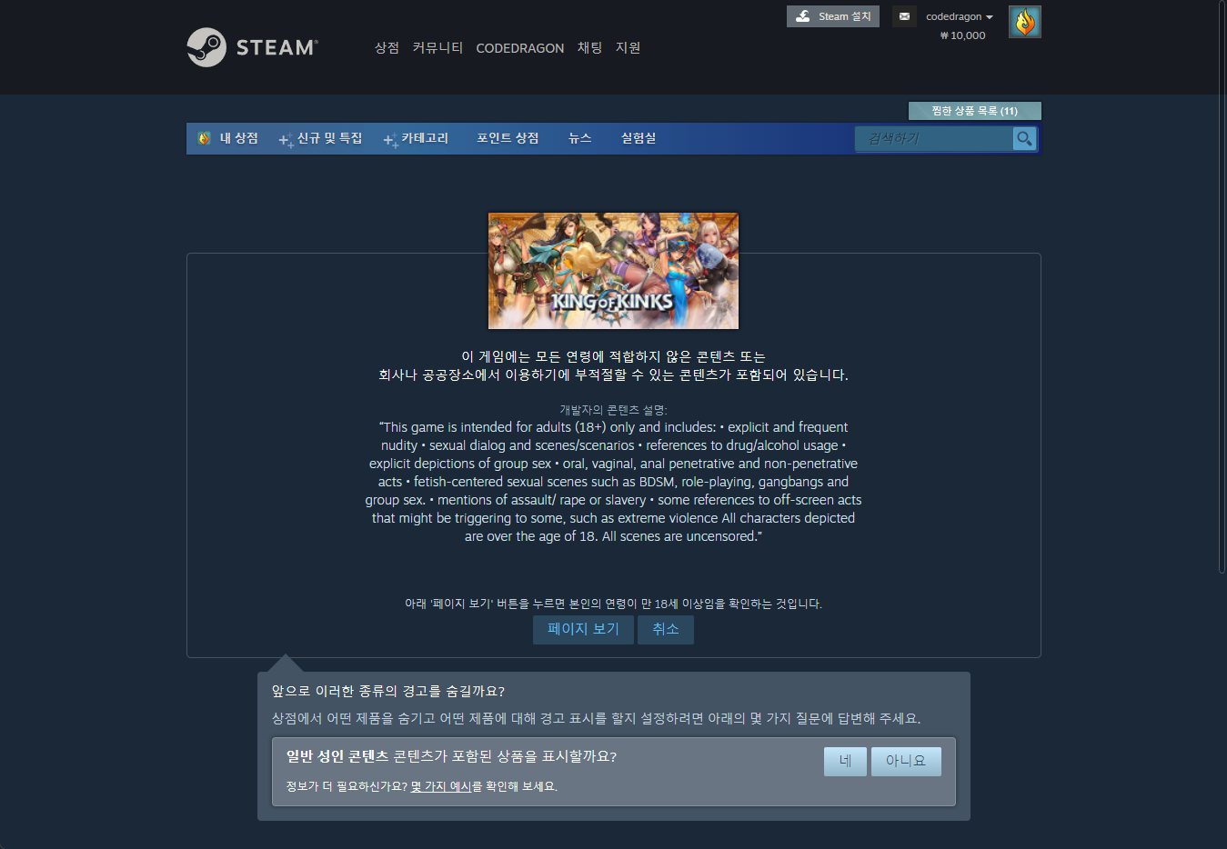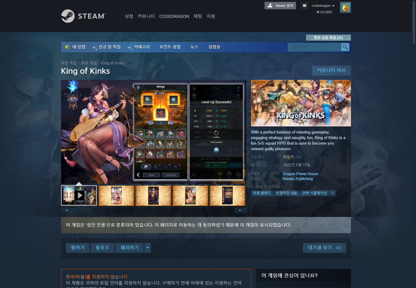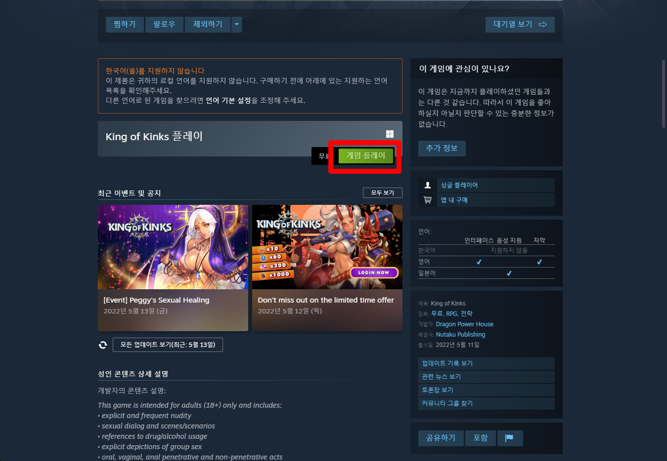 "King of Kinks" 페이지를 내려 [게임 플레이]를 클릭하면 됩니다.