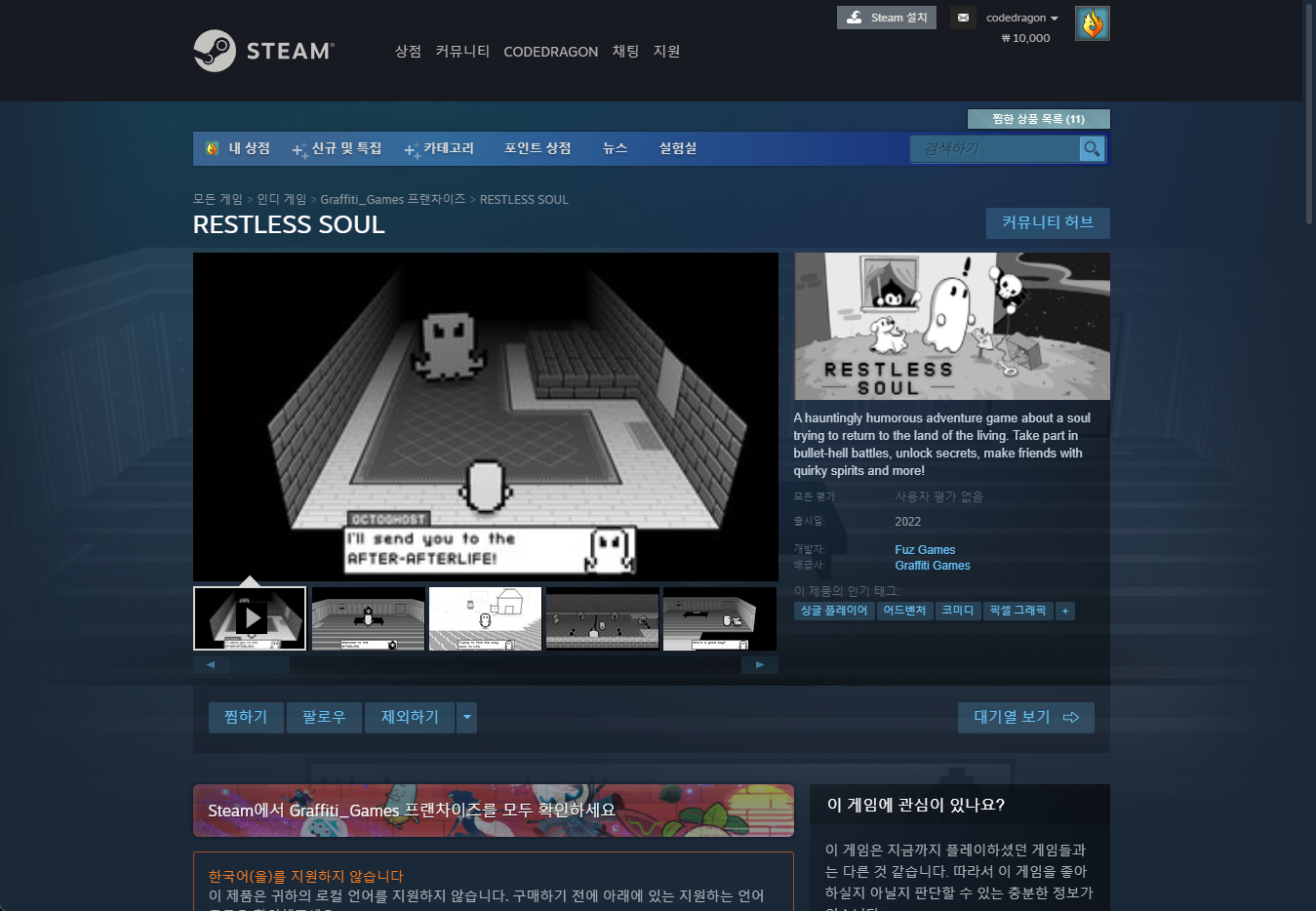 "RESTLESS SOUL" 나의 게임 라이브러리 확인