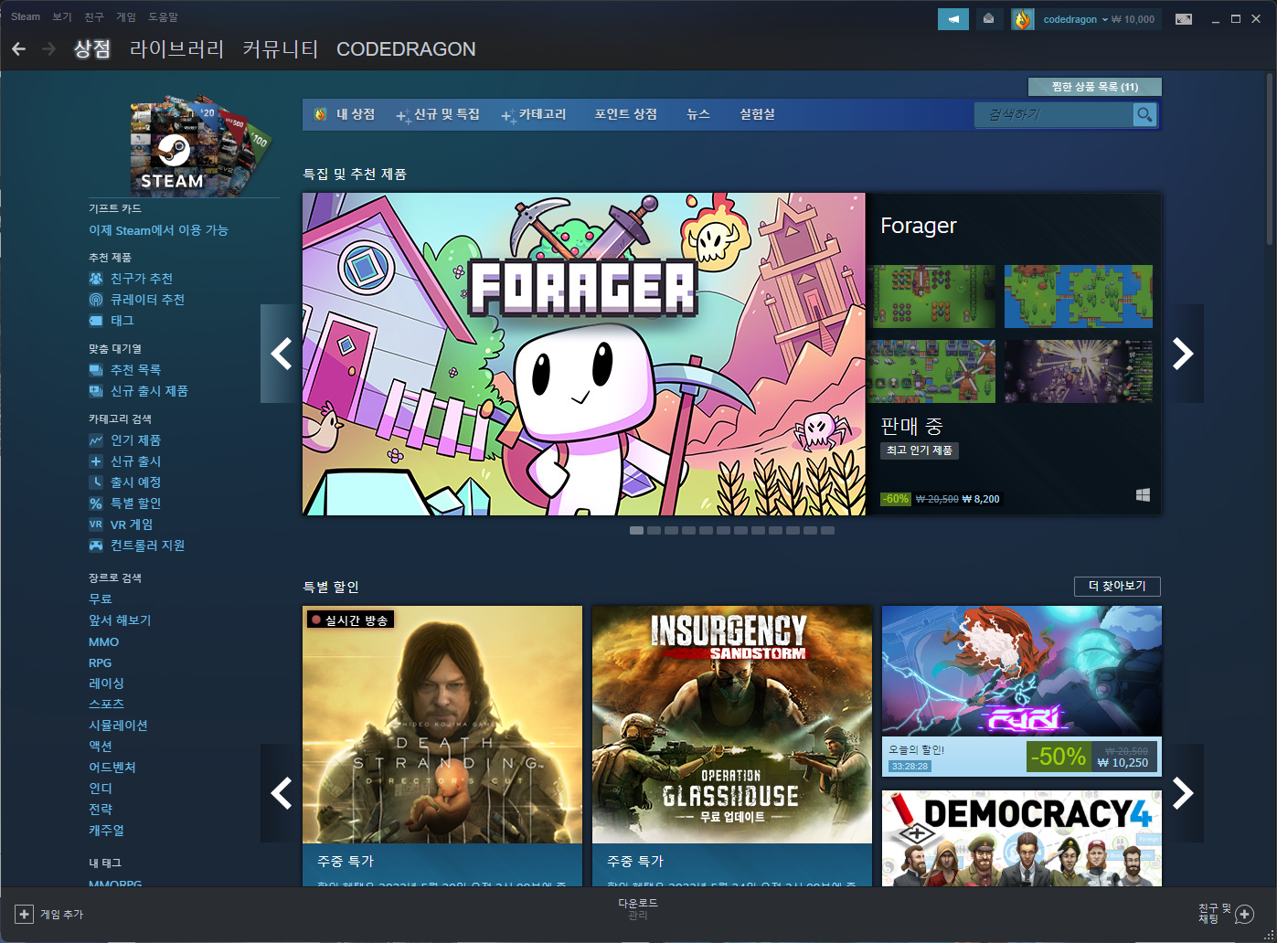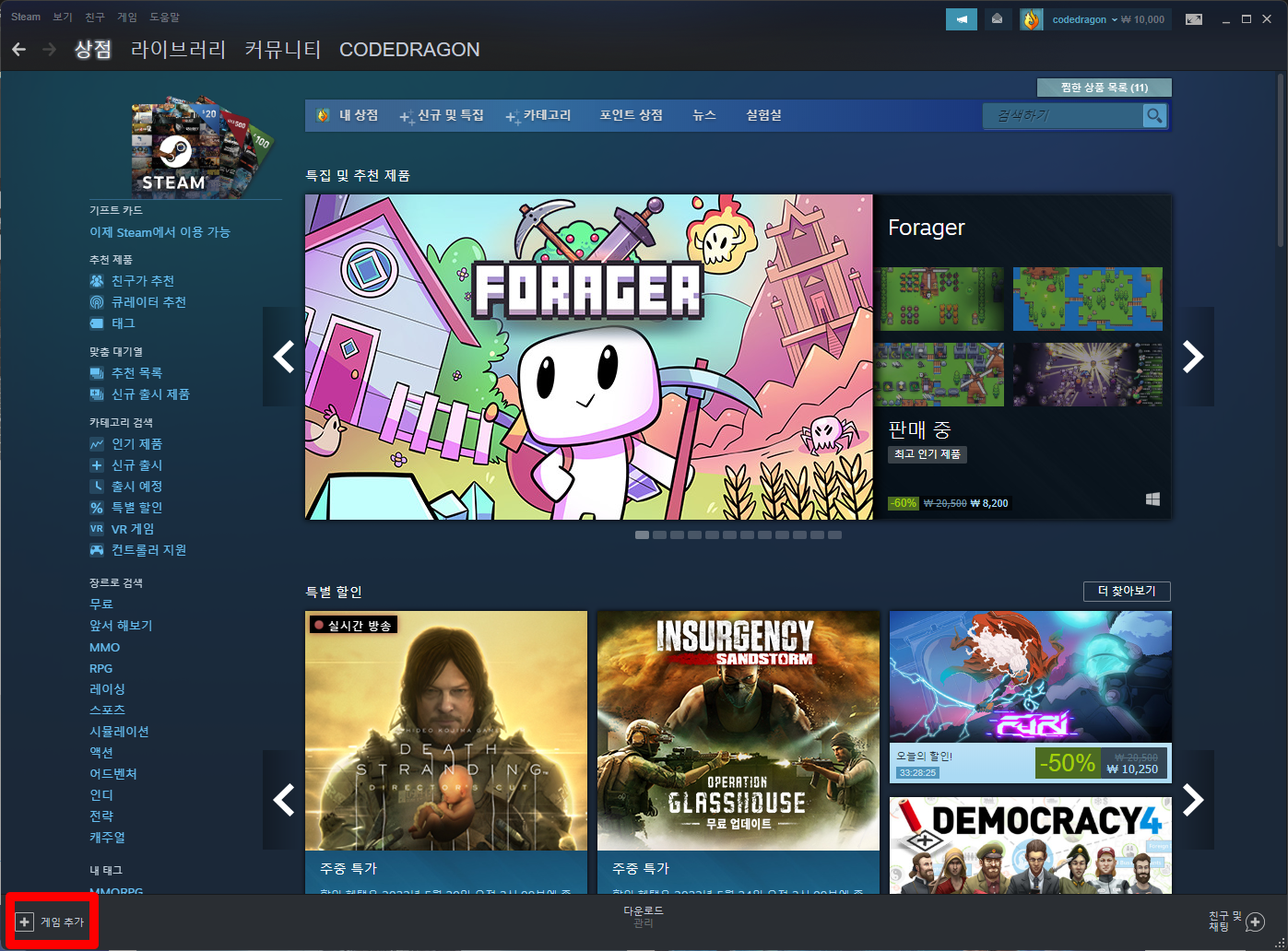 스팀 런처에서 상단에 있는 [라이브러리] 메뉴를 클릭합니다.