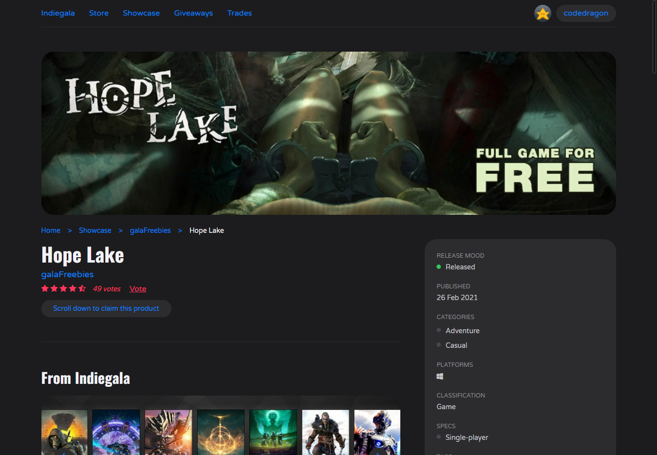 ₩8,500 -> ₩ 0(Free) Hope Lake 호프 레이크 무료 - 인디갈라 indiegala 무료 소장 기회 기간한정 indiegala FREE GAME, Limited time