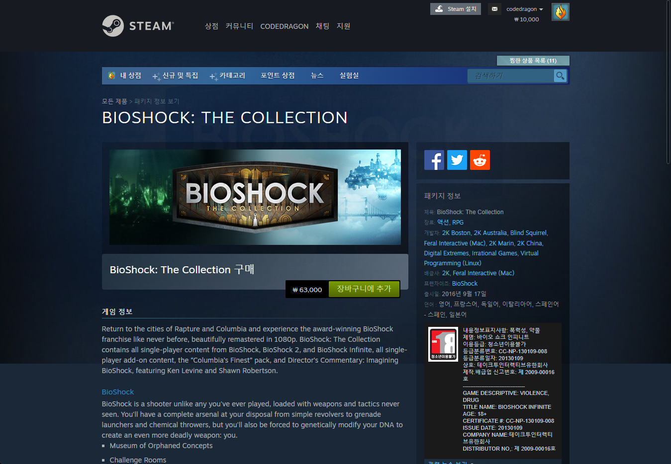 - "BioShock: The Collection" - Steam 스팀 게임 페이지