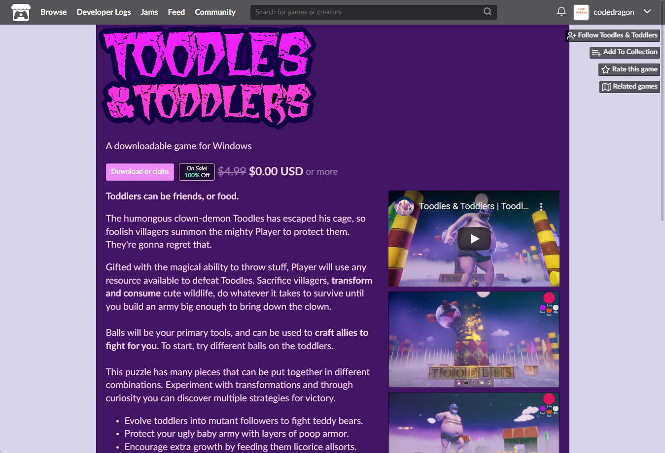 ₩7,100 -> ₩0(Free) Toodles & Toddlers 투들스 & 타들러스 무료로 받기 영구소장 (재배포) - itch.io 잇치 닷 아이오 한시적 무료 소장하기