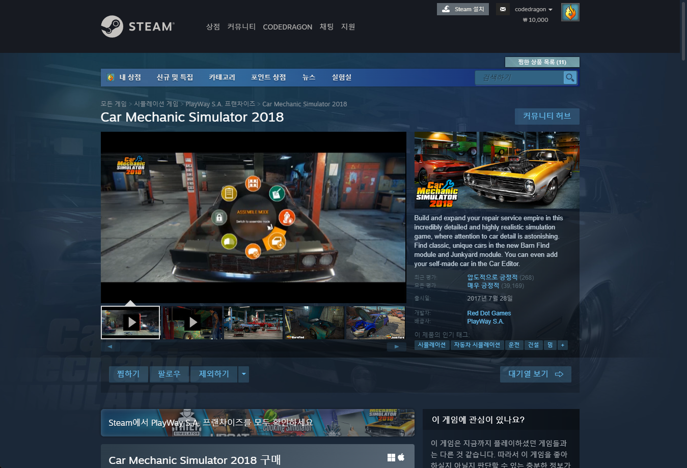 - "Car Mechanic Simulator 2018" - Steam 스팀 게임 페이지