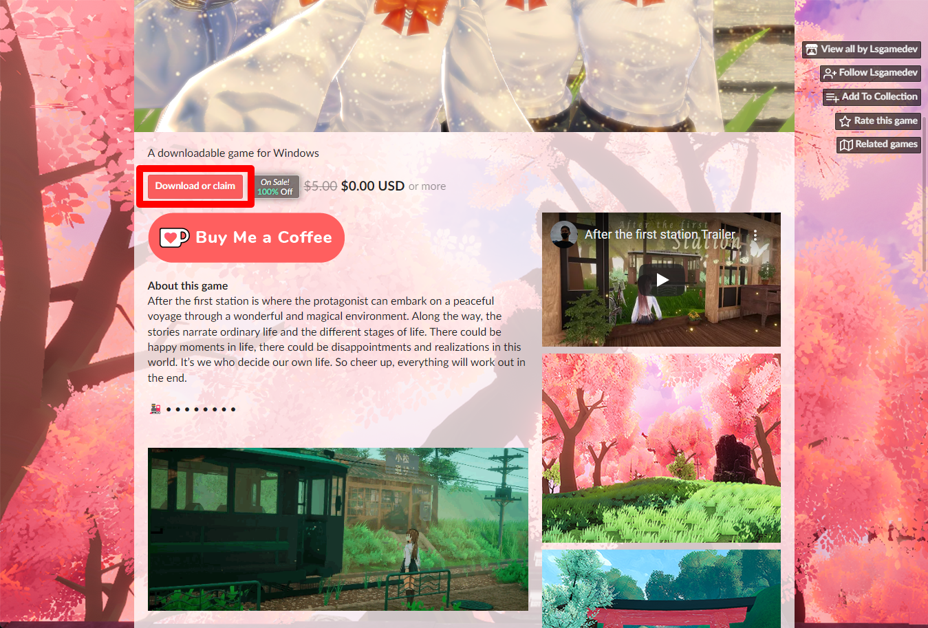 "After the first station" 페이지를 내려서 [Download or claim]을 클릭합니다.