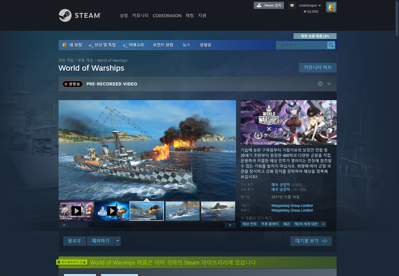 다시 "World of Warships × Azur Lane: Free Intro Bundle" 게임페이지로 돌아와 보면