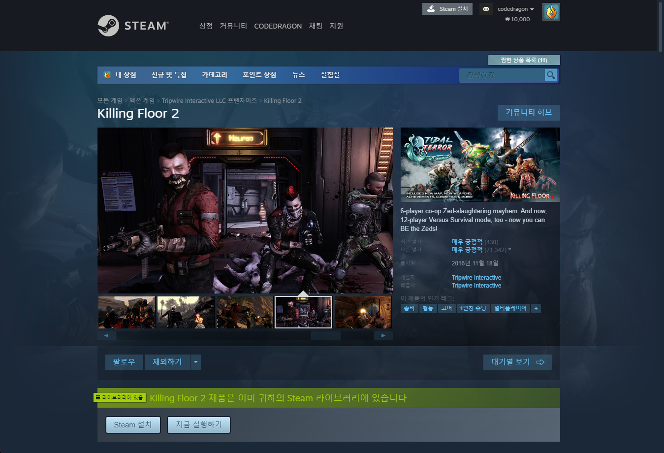 - "Killing Floor 2" 게임 보유 확인
