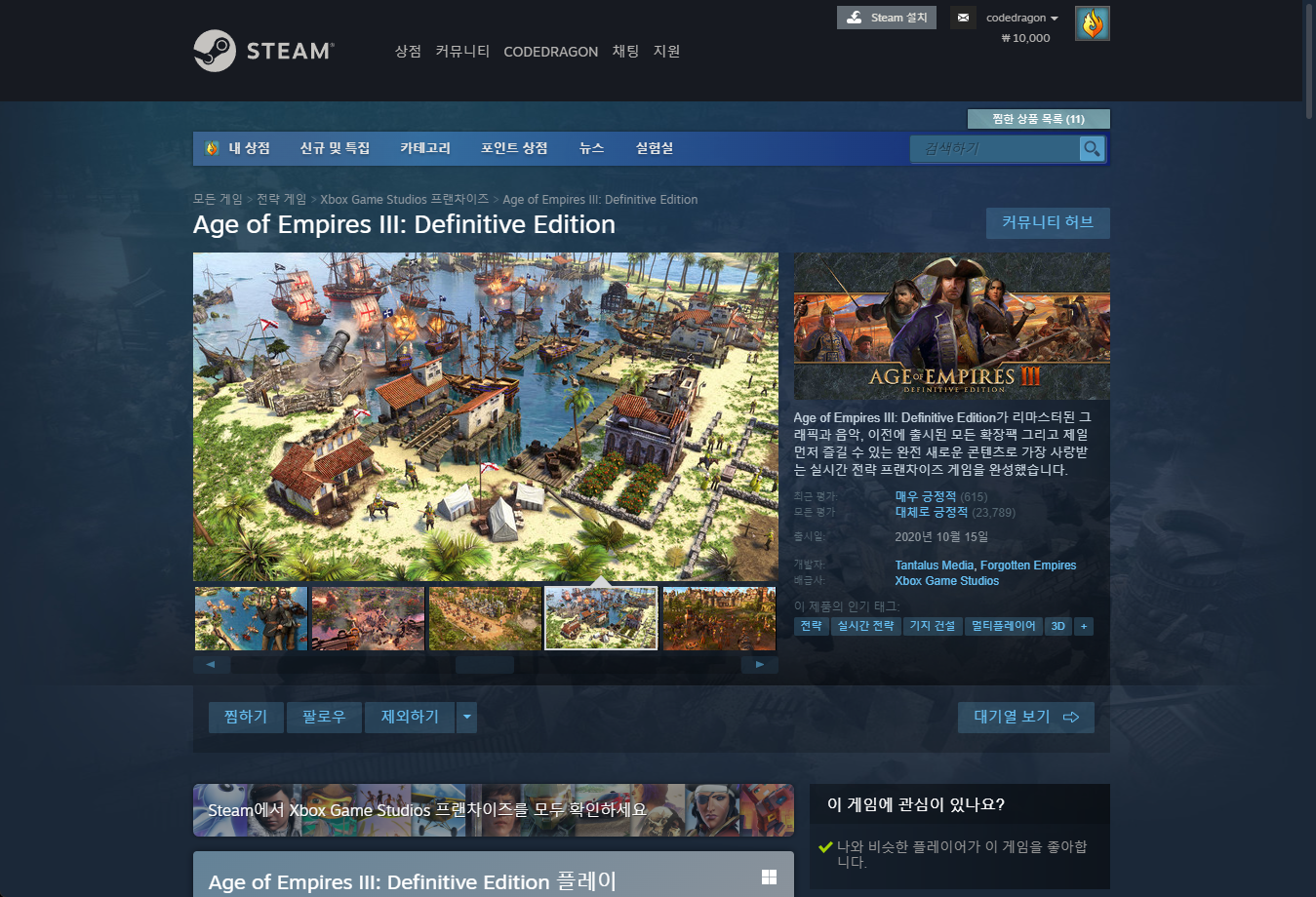 "Age of Empires III: Definitive Edition" 게임페이지에 접속합니다.