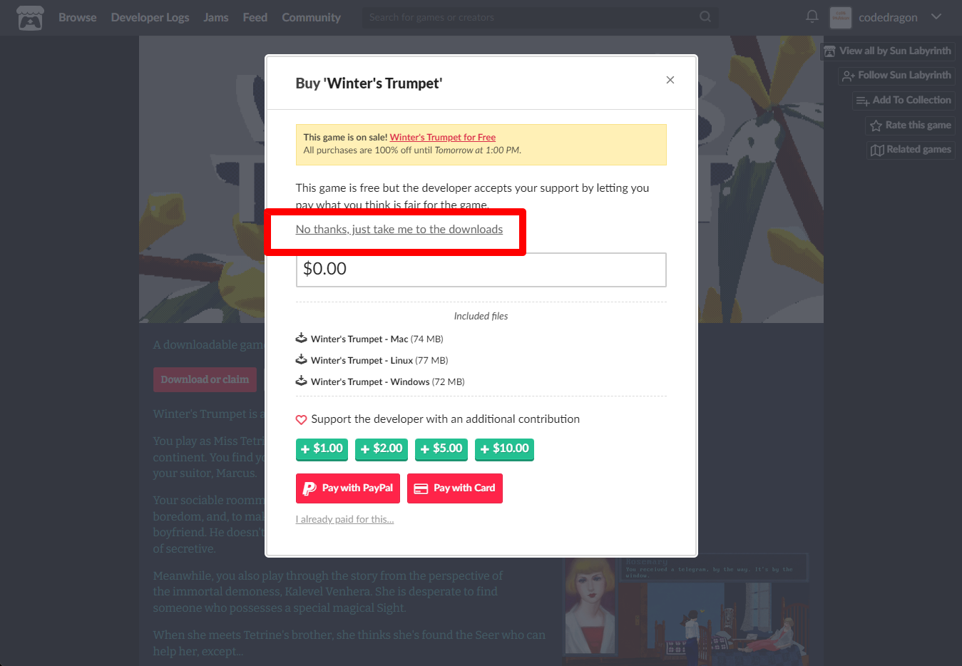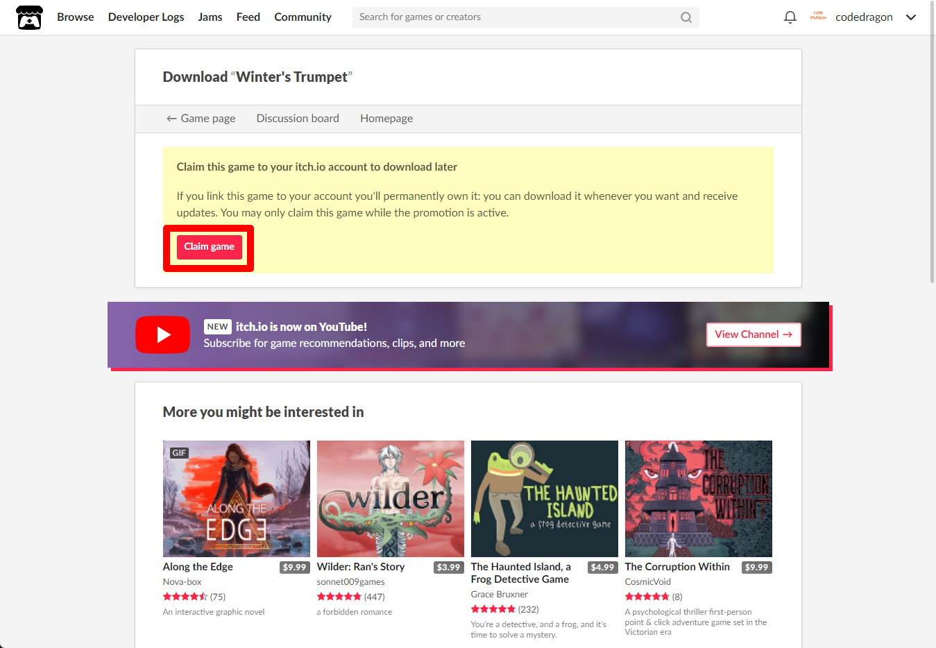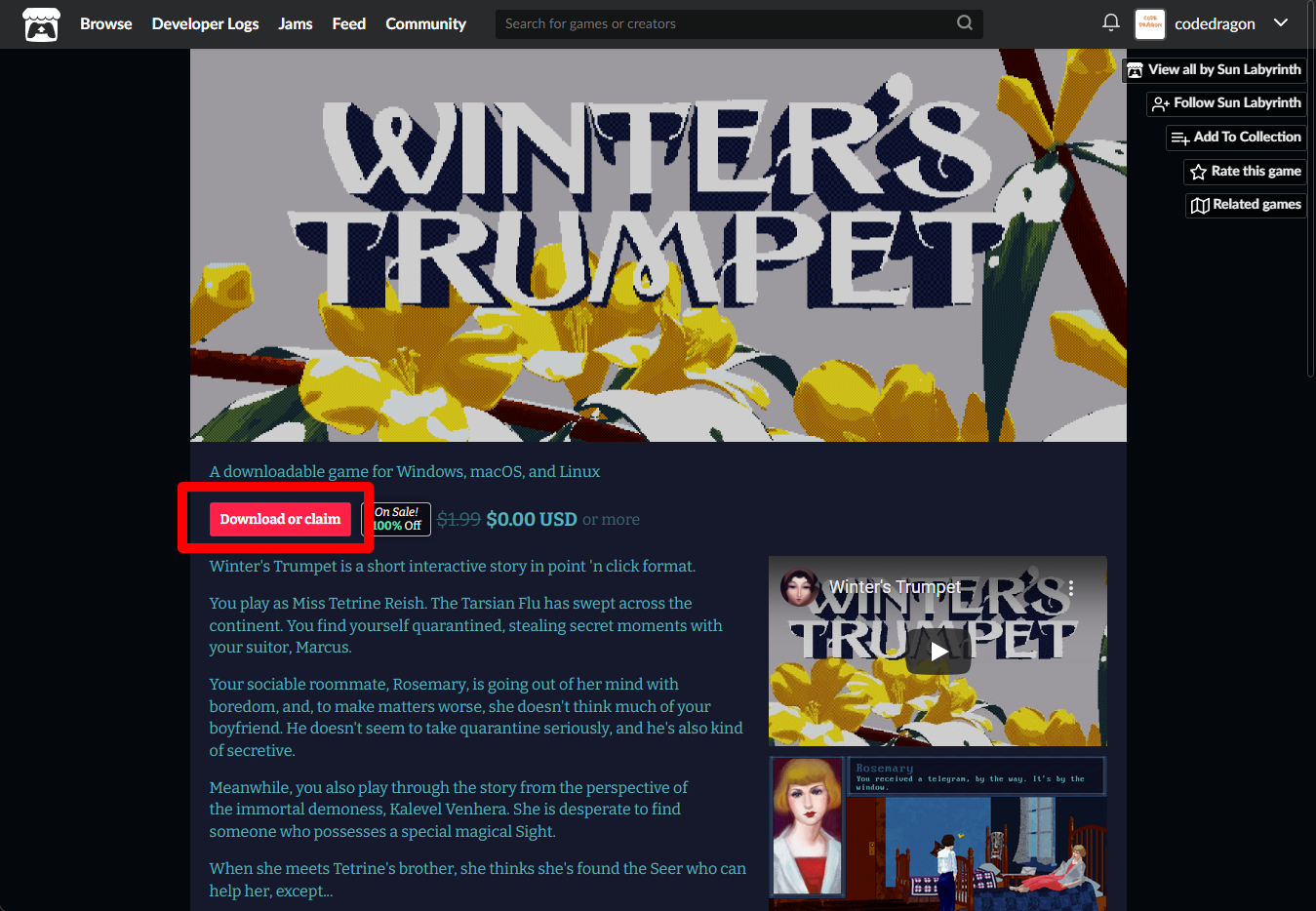 "Winter's Trumpet" 페이지에 있는 [Download or claim]을 클릭합니다.