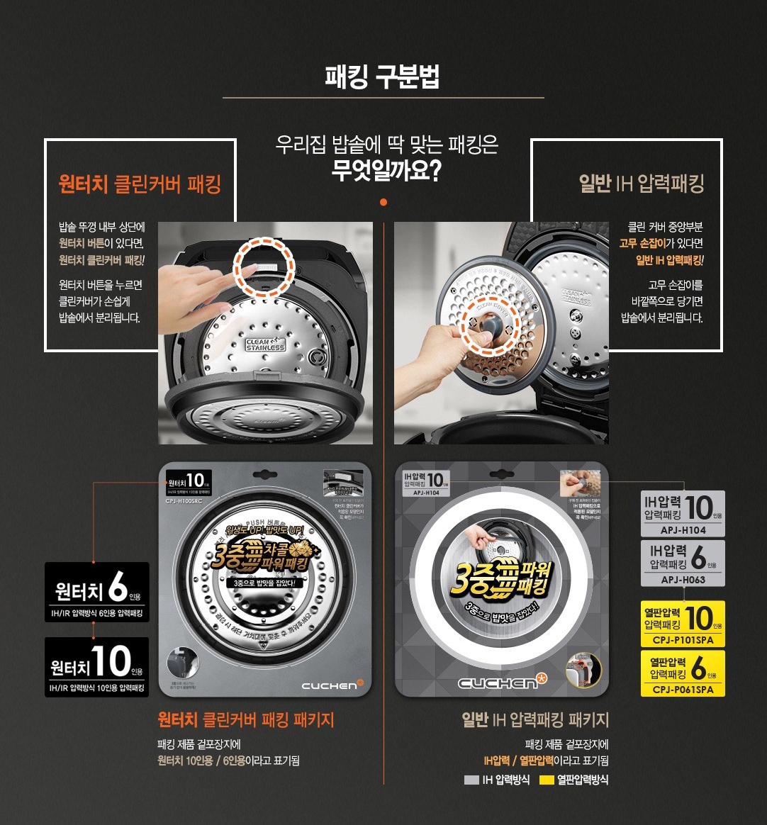 CUCHEN 쿠첸 IH/IR 원터치 / 일반 IH 압력 패킹, 클린커버 패킹, 클린커버, 내측패킹 교체방법