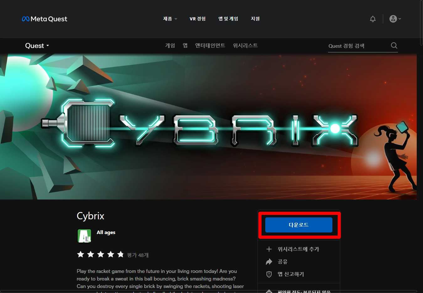 "Cybrix" 게임페이지에 있는 [다운로드] 버튼 클릭합니다.