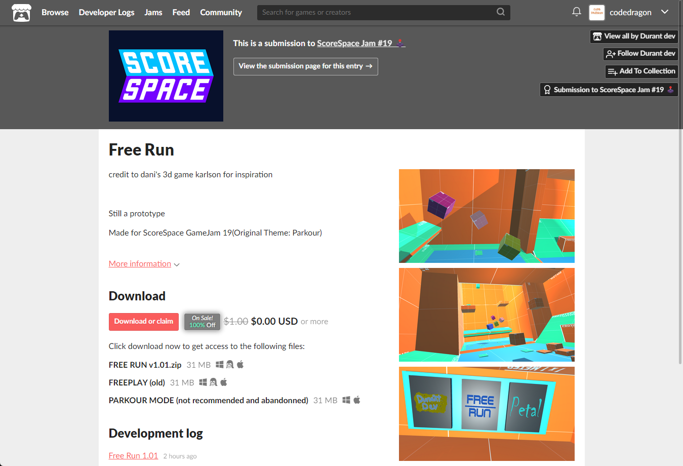 ₩1,396 -> ₩0(Free) Free Run 프리 런 무료로 받기 영구소장 (재배포) - itch.io 잇치 닷 아이오 한시적 무료 소장하기