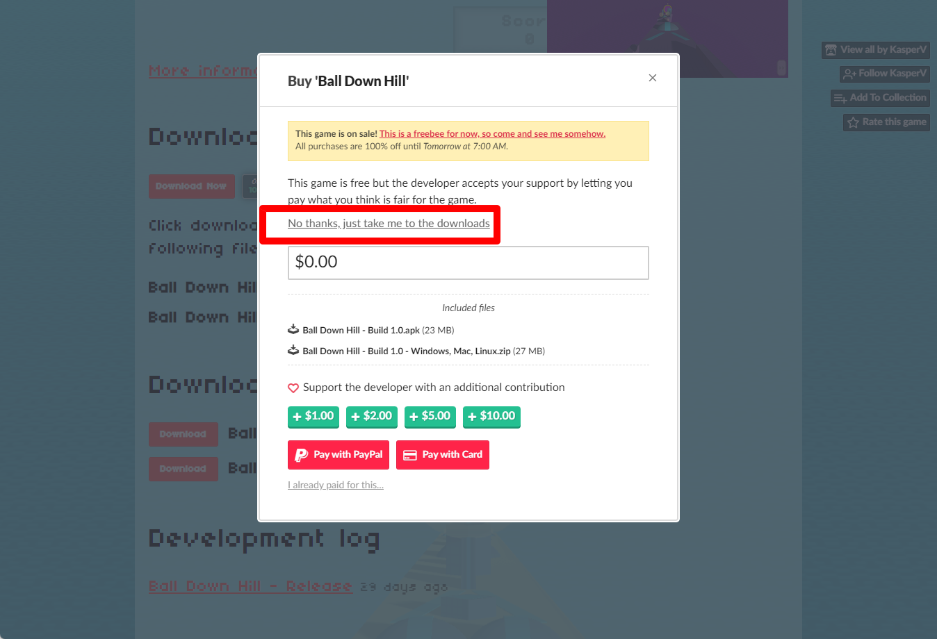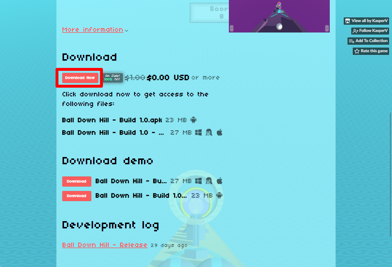"Ball Down Hill" 페이지 내려서 [Download Now]을 클릭합니다.