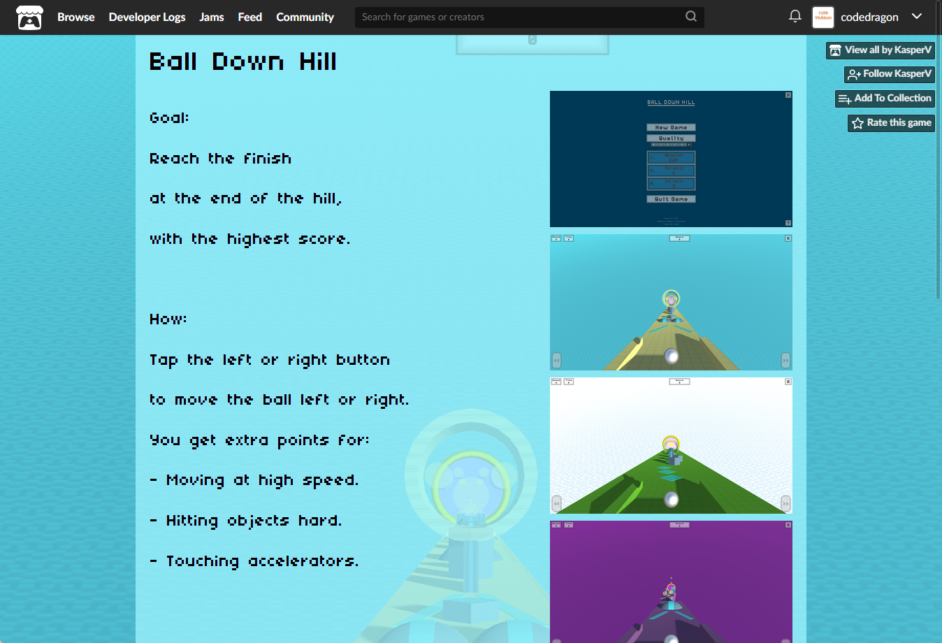 "Ball Down Hill" 공식 페이지에 접속합니다.