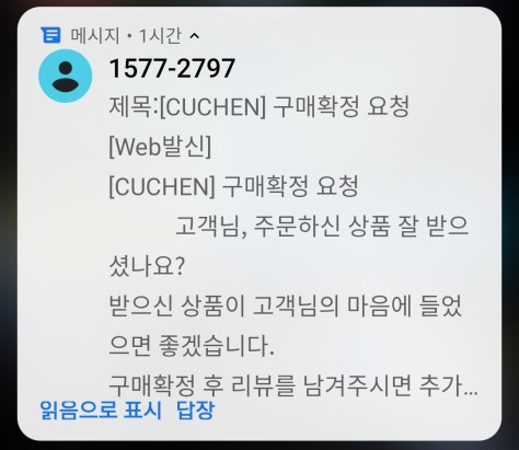 구매완료 후 구매확정 및 리뷰 작성 문자메시지