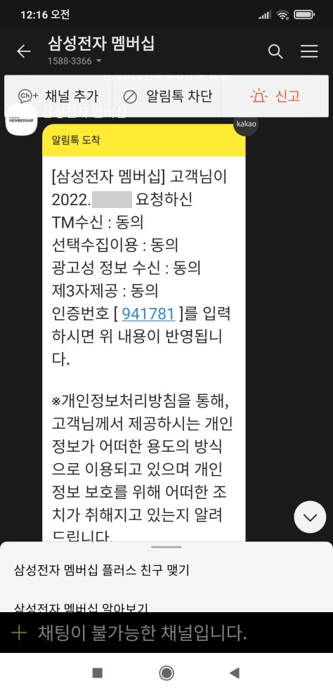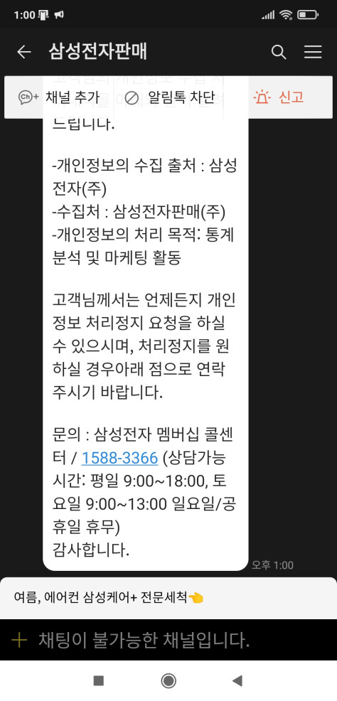 삼성전자 광고문자 / 개인정보 수집 처리내역 알림