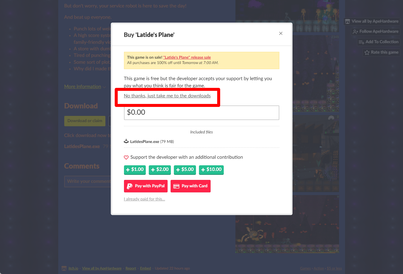 "Latide's Plane" 페이지를 내려서 [Download or claim]을 클릭합니다.