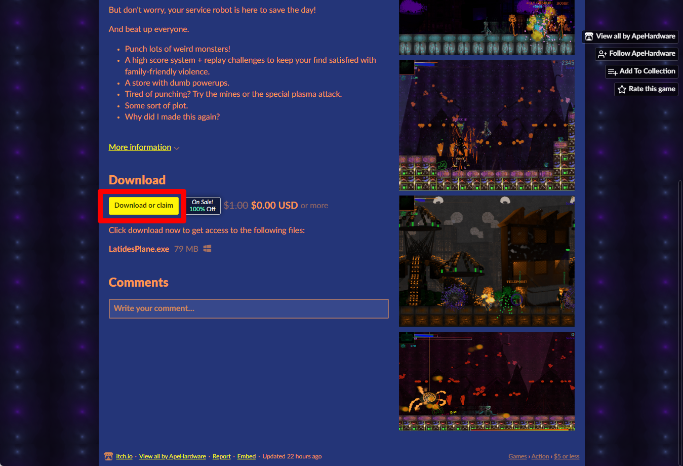 "Latide's Plane" 페이지를 내려서 [Download or claim]을 클릭합니다.