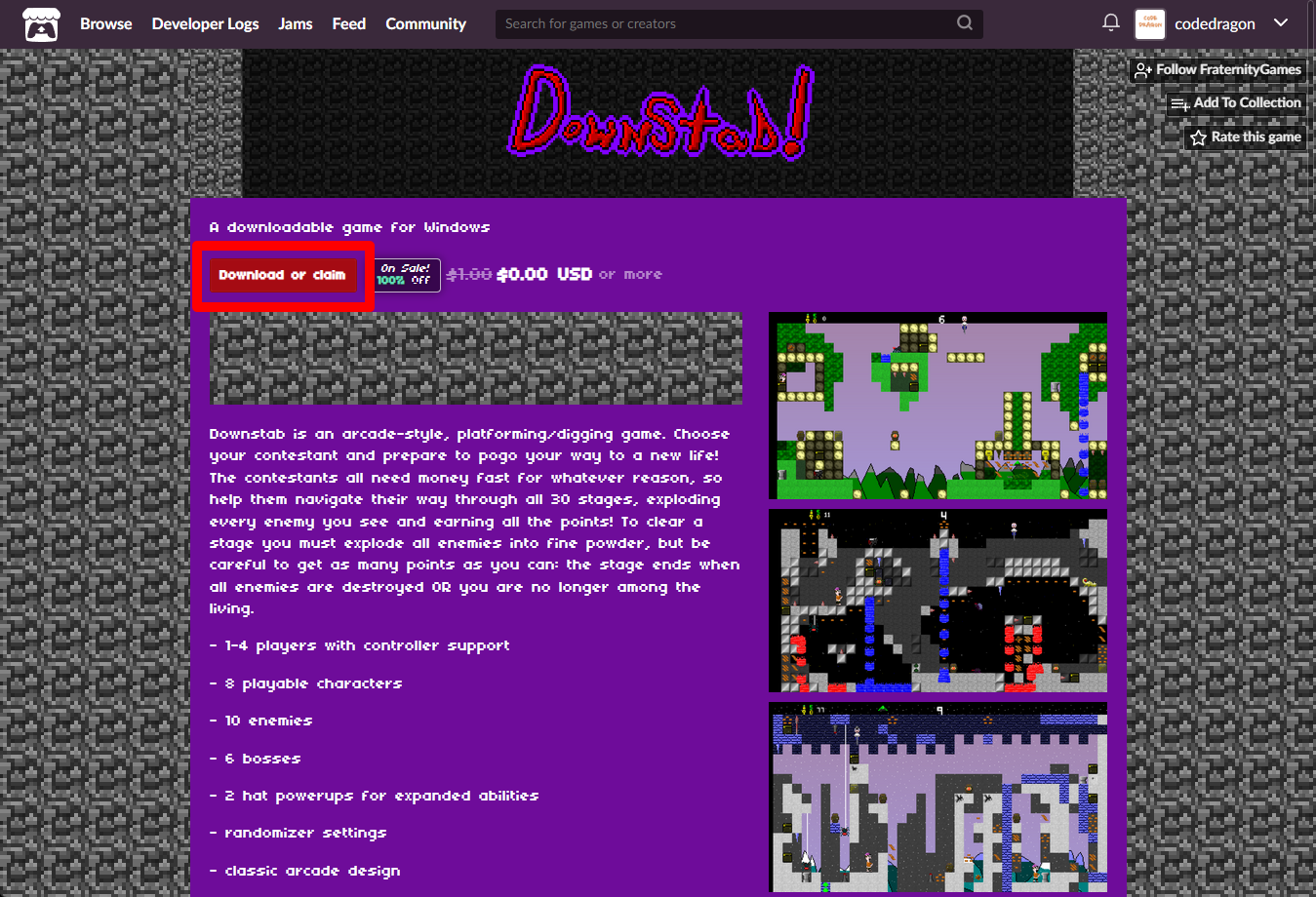 ₩1,265 -> ₩0(Free) Downstab 다운스탭 무료로 받기 영구소장 - itch.io 잇치 닷 아이오 한시적 무료 소장하기