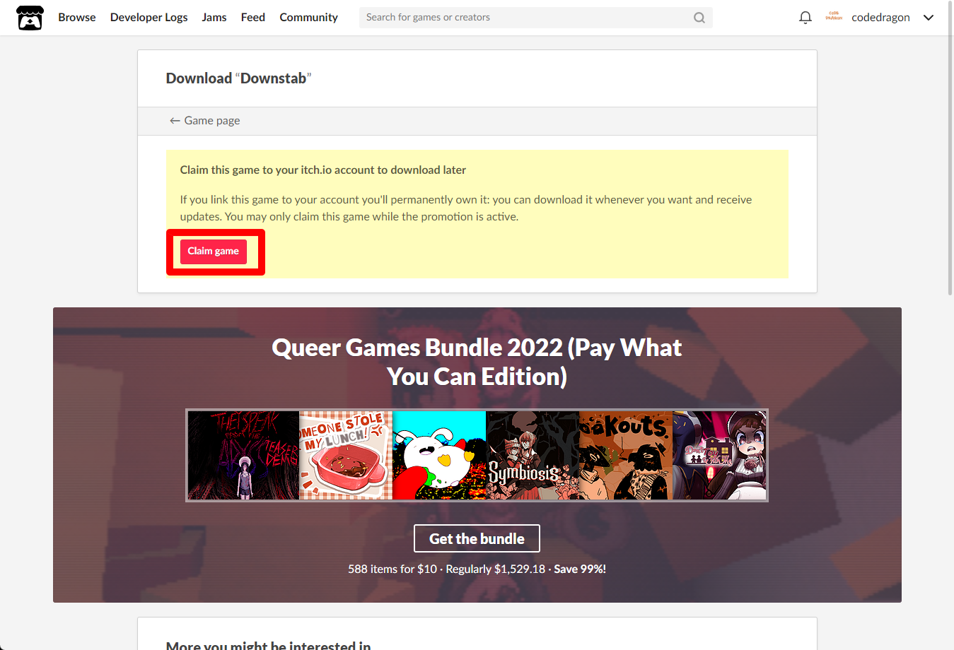 "Downstab" 페이지에 있는 [Download or claim]을 클릭합니다.