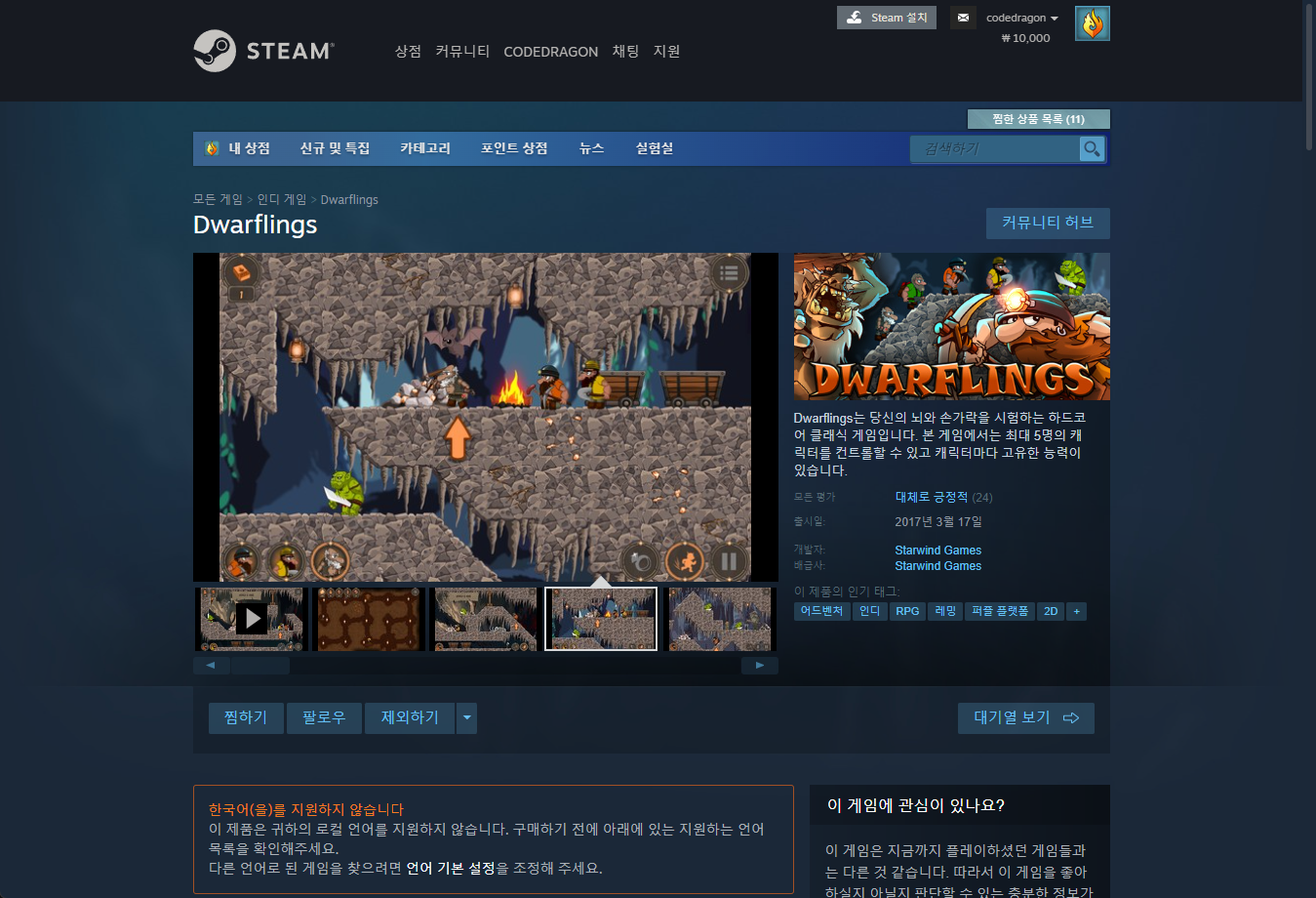 "Dwarflings" 게임 보유 확인