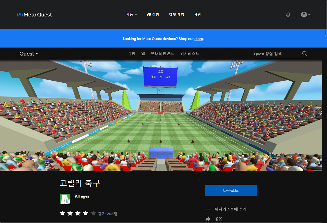 고릴라 축구 VR 게임 무료로 받기 - 오큘러스 oculus