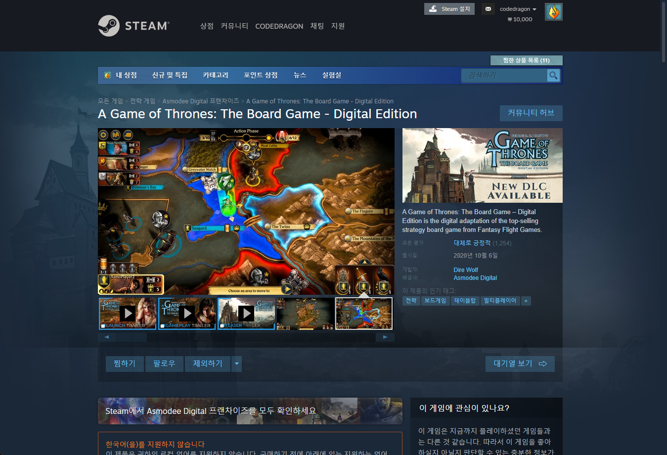- "A Game Of Thrones: The Board Game Digital Edition" - Steam 스팀 게임 페이지