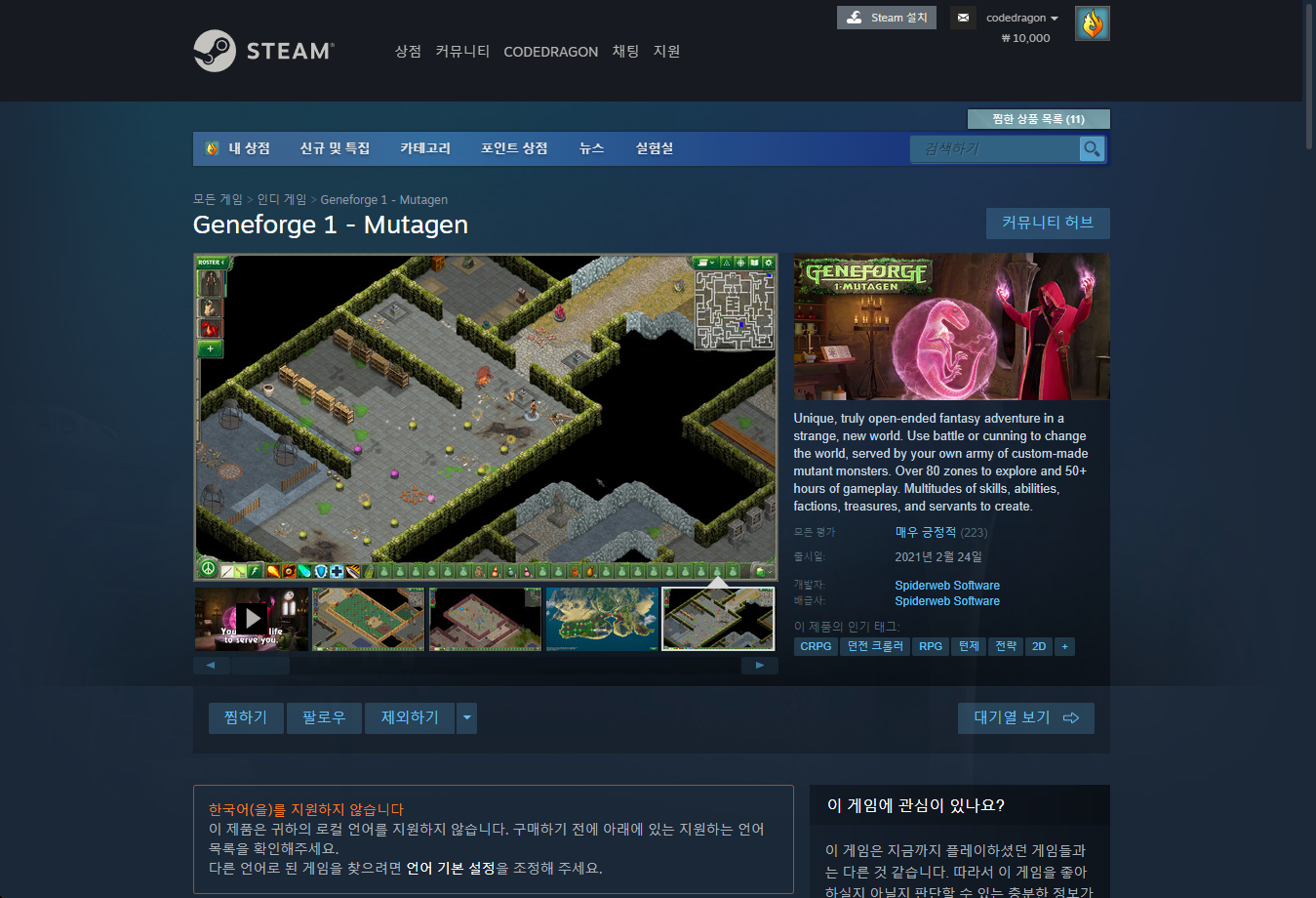 "Geneforge 1 - Mutagen" - Steam 스팀 게임 페이지