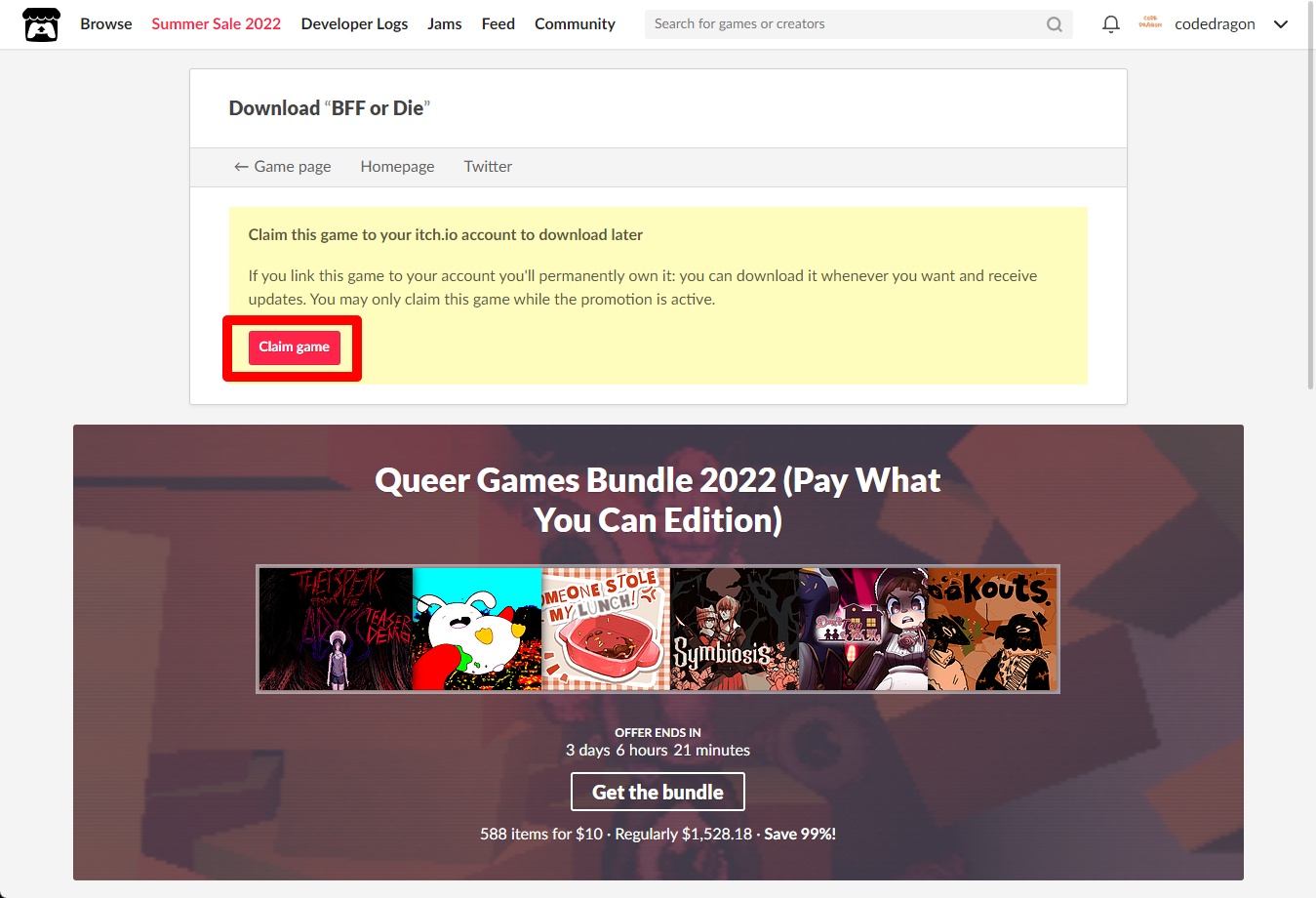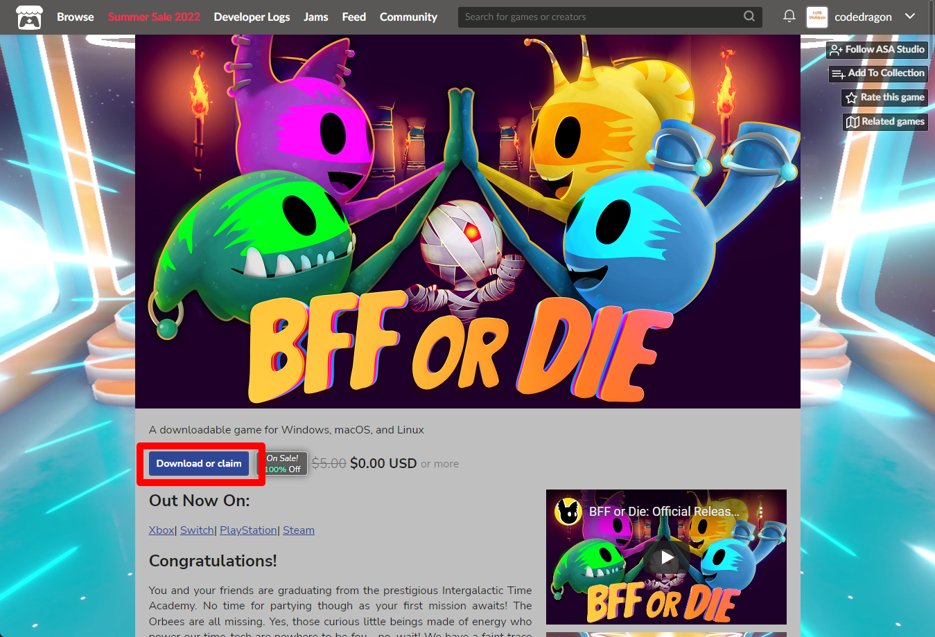 "BFF or Die" 페이지에 있는 [Download or claim]을 클릭합니다.