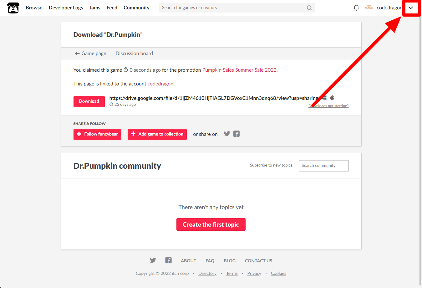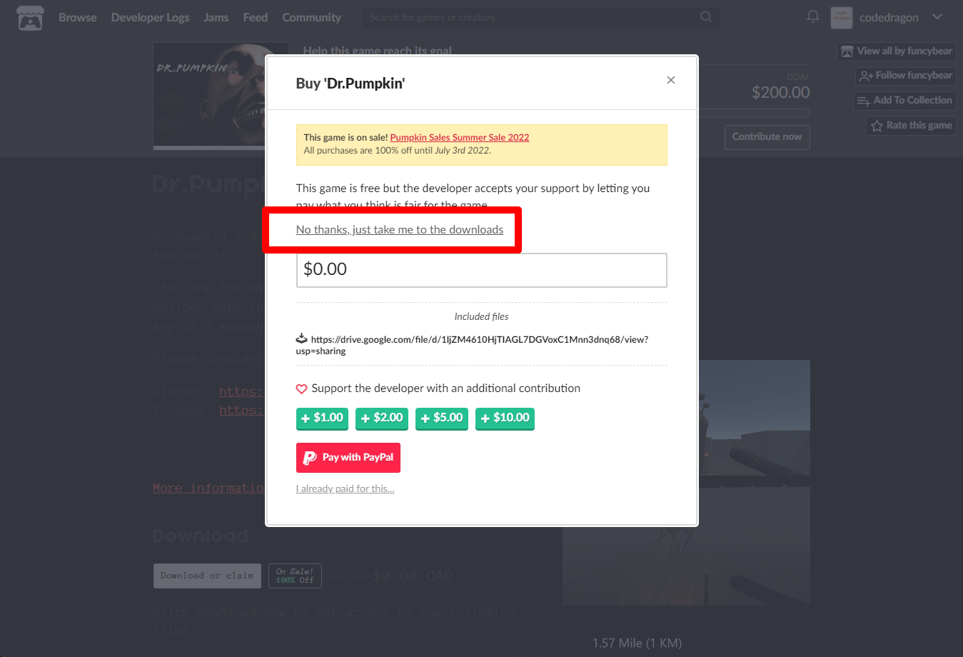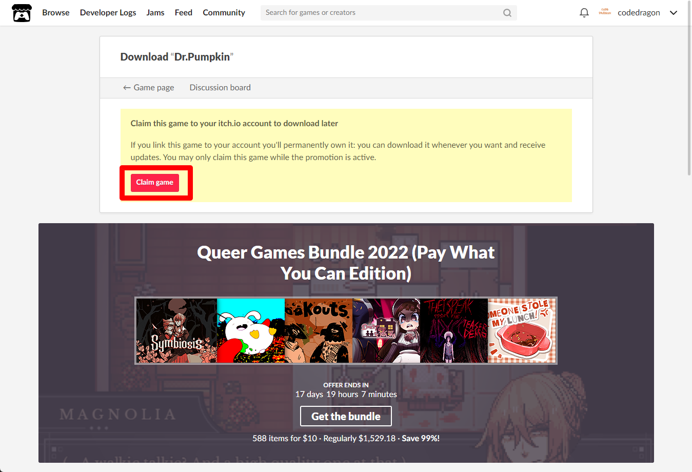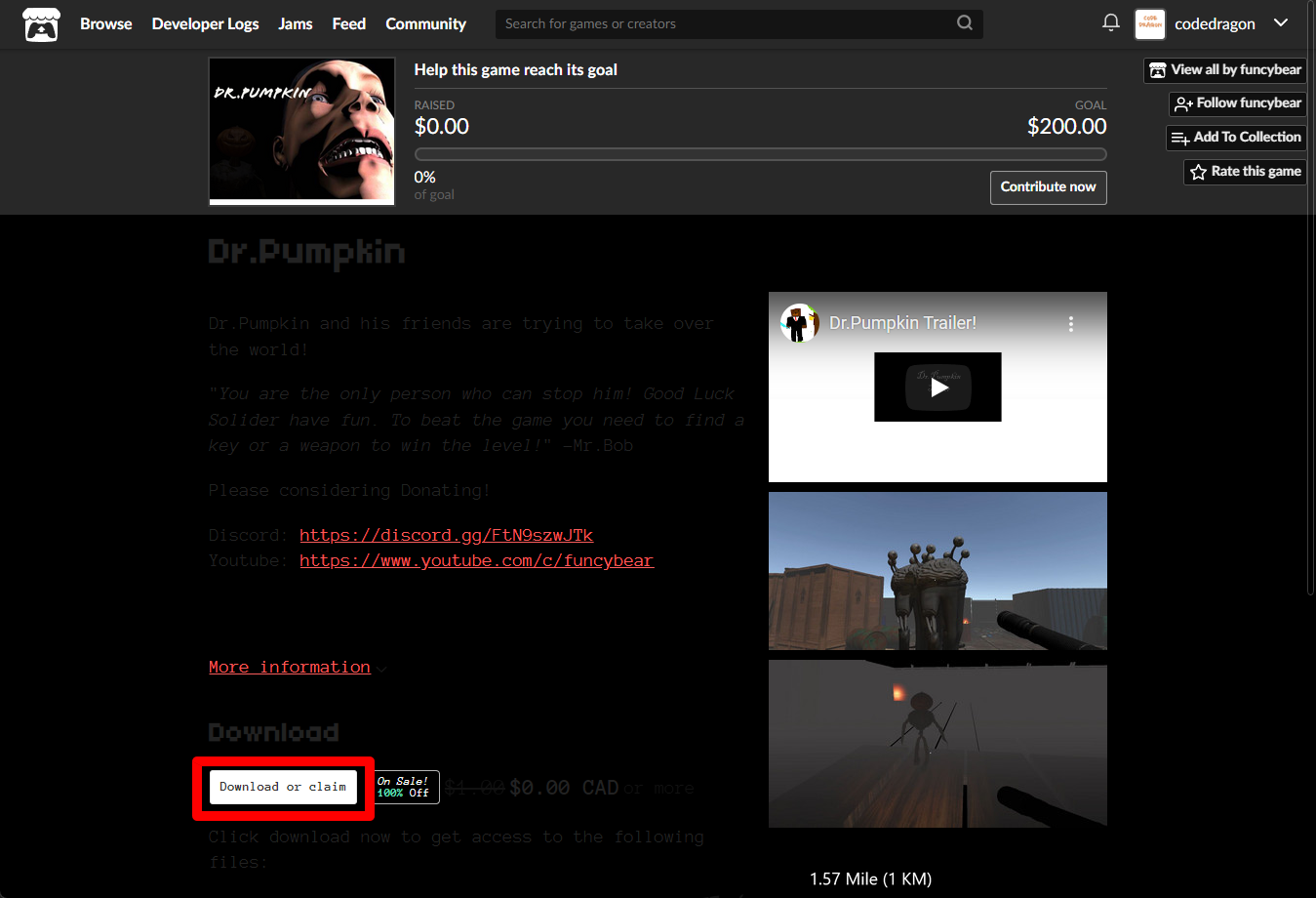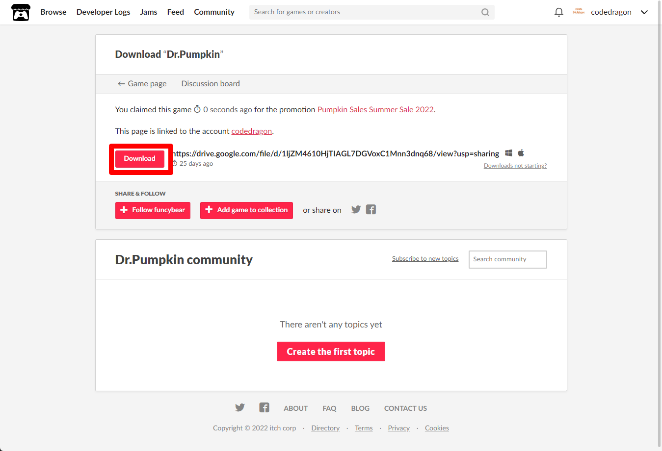 "Dr.Pumpkin" 페이지에 있는 [Download or claim]을 클릭합니다.