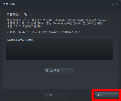 - "Mythic" 스팀키 등록하기; 활성화하기