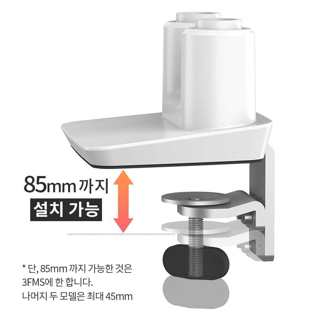 클램프 방식 설치와 책상 구멍을 통한 그로밋 설치방식 모두 지원합니다.